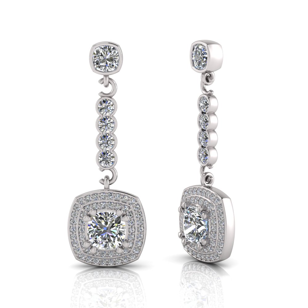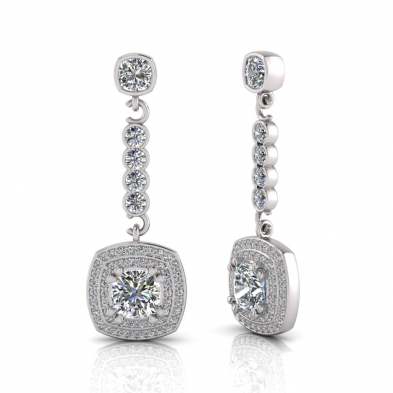 Cushion Claw Set And Double Halo Pave Set Drop Earring