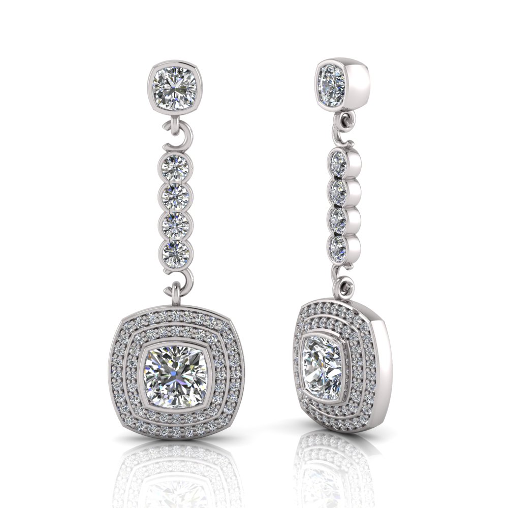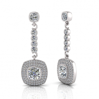Cushion Bezel Set And Double Halo Pave Set Drop Earring