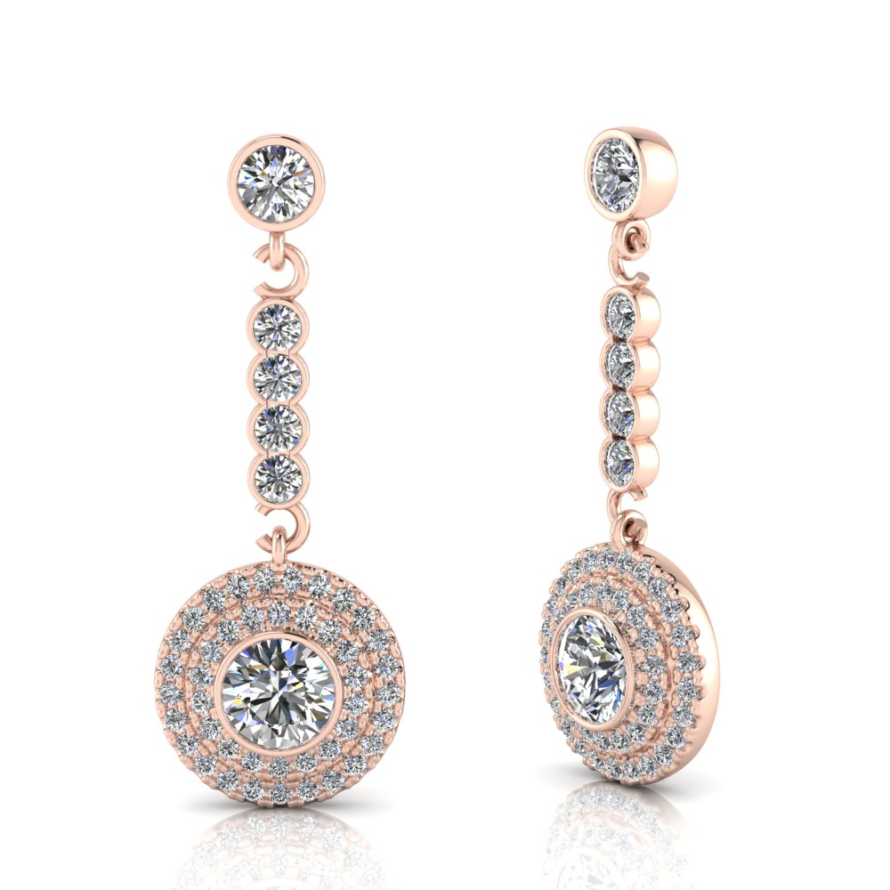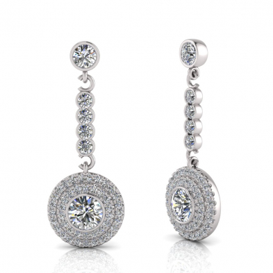 Round Bezel And Double Halo Scallop Set Drop Earring