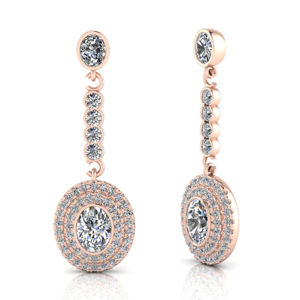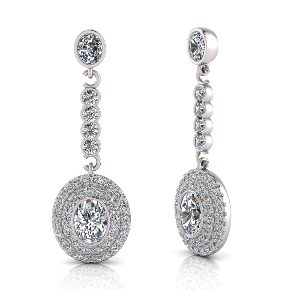 Oval Bezel And Double Halo Scallop Set Drop Earring