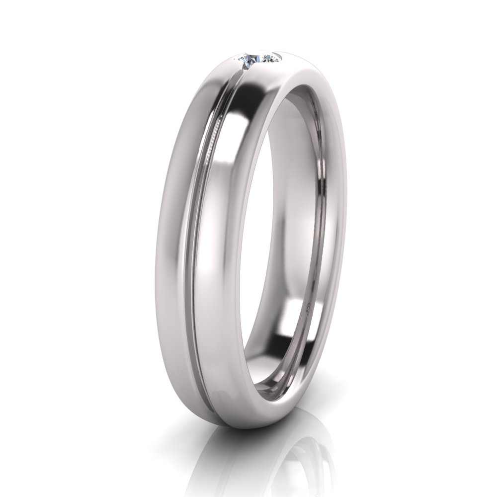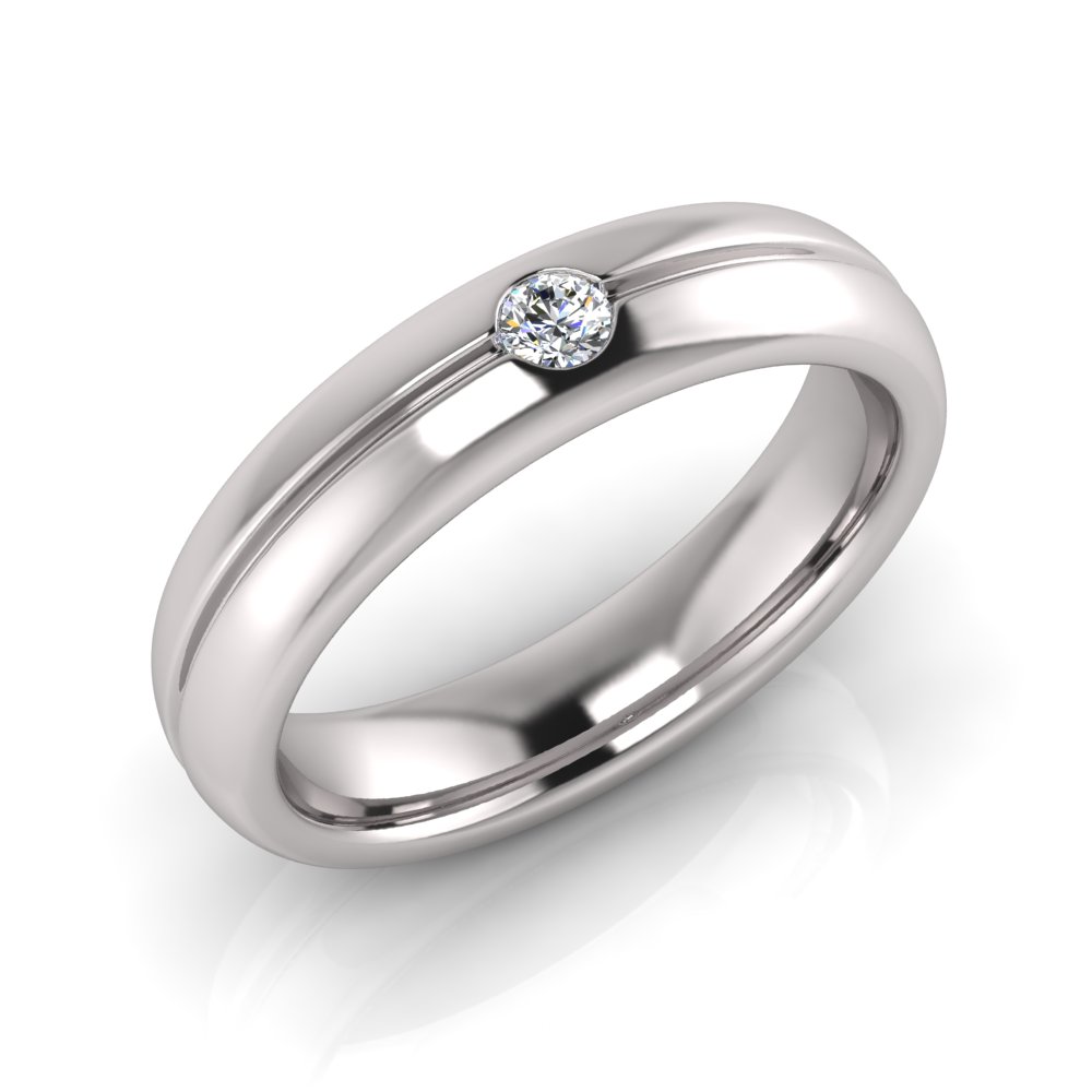 Half Round Single Diamond Narrow Men's Ring