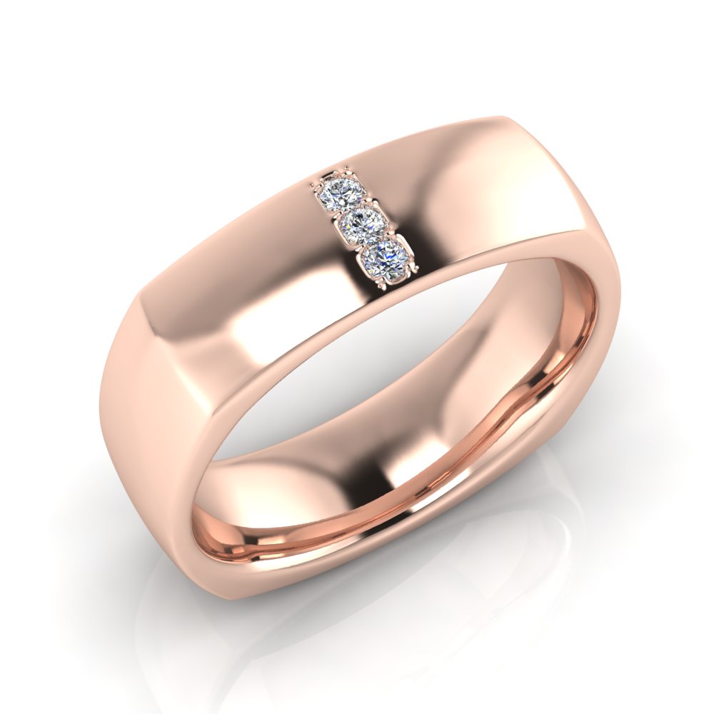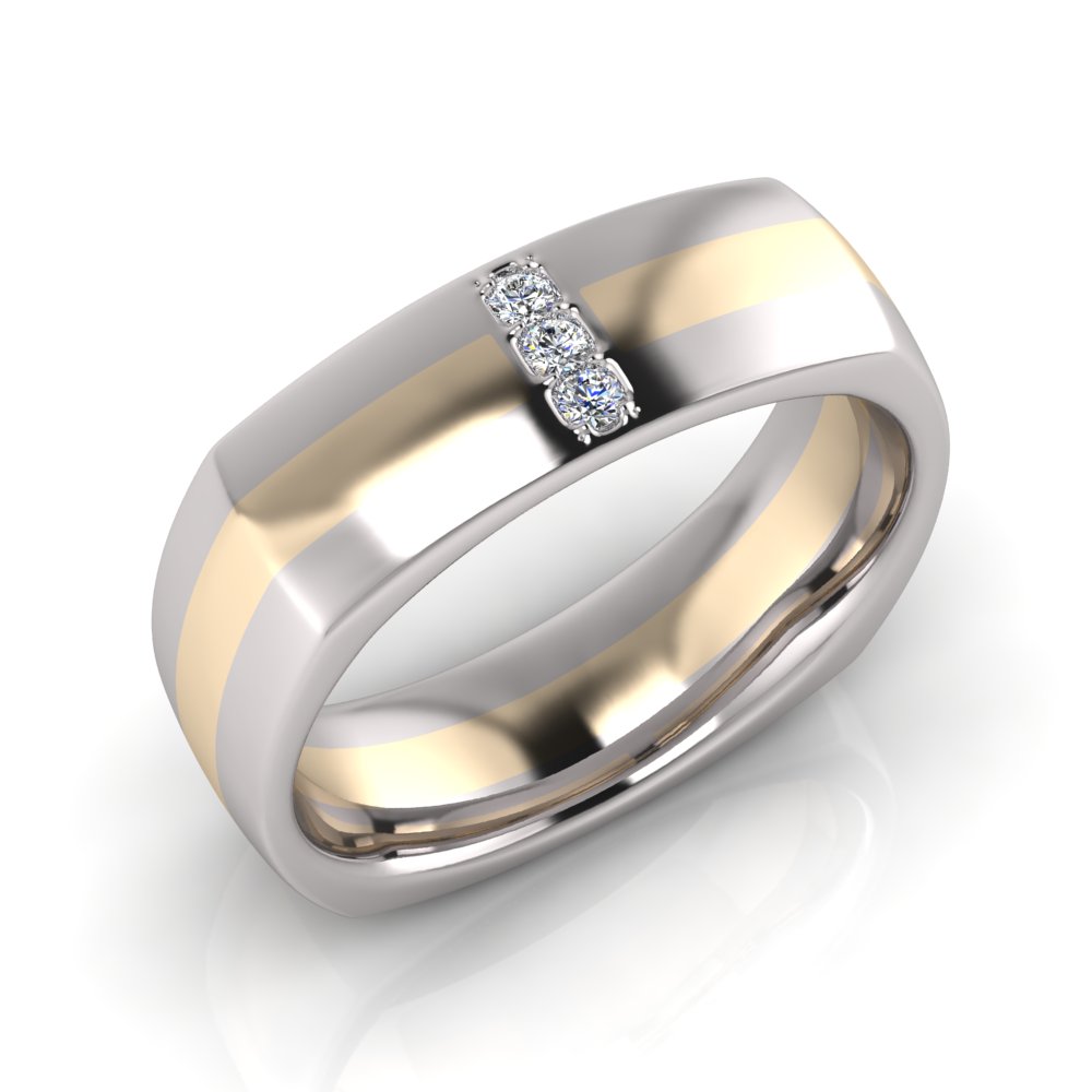 Half Round Square Shaped Three Stone Insert Men's Ring