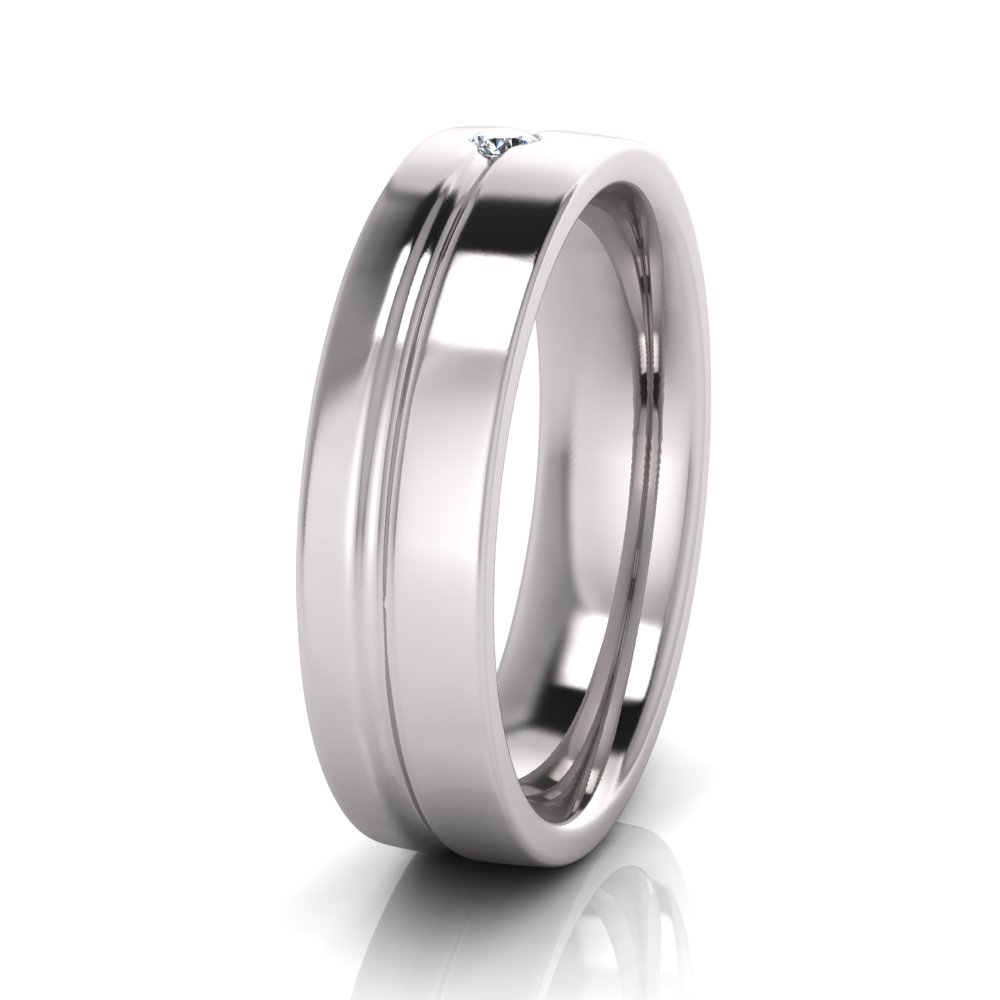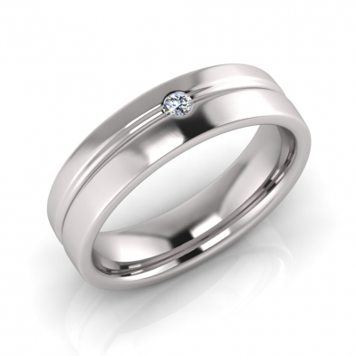Half Round Groove And One Stone Men’s Ring