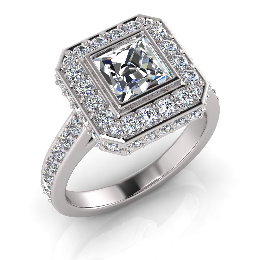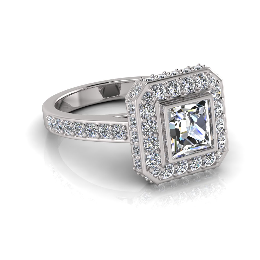 Pave Set Shank | Princess Rub-over And Pave Setting