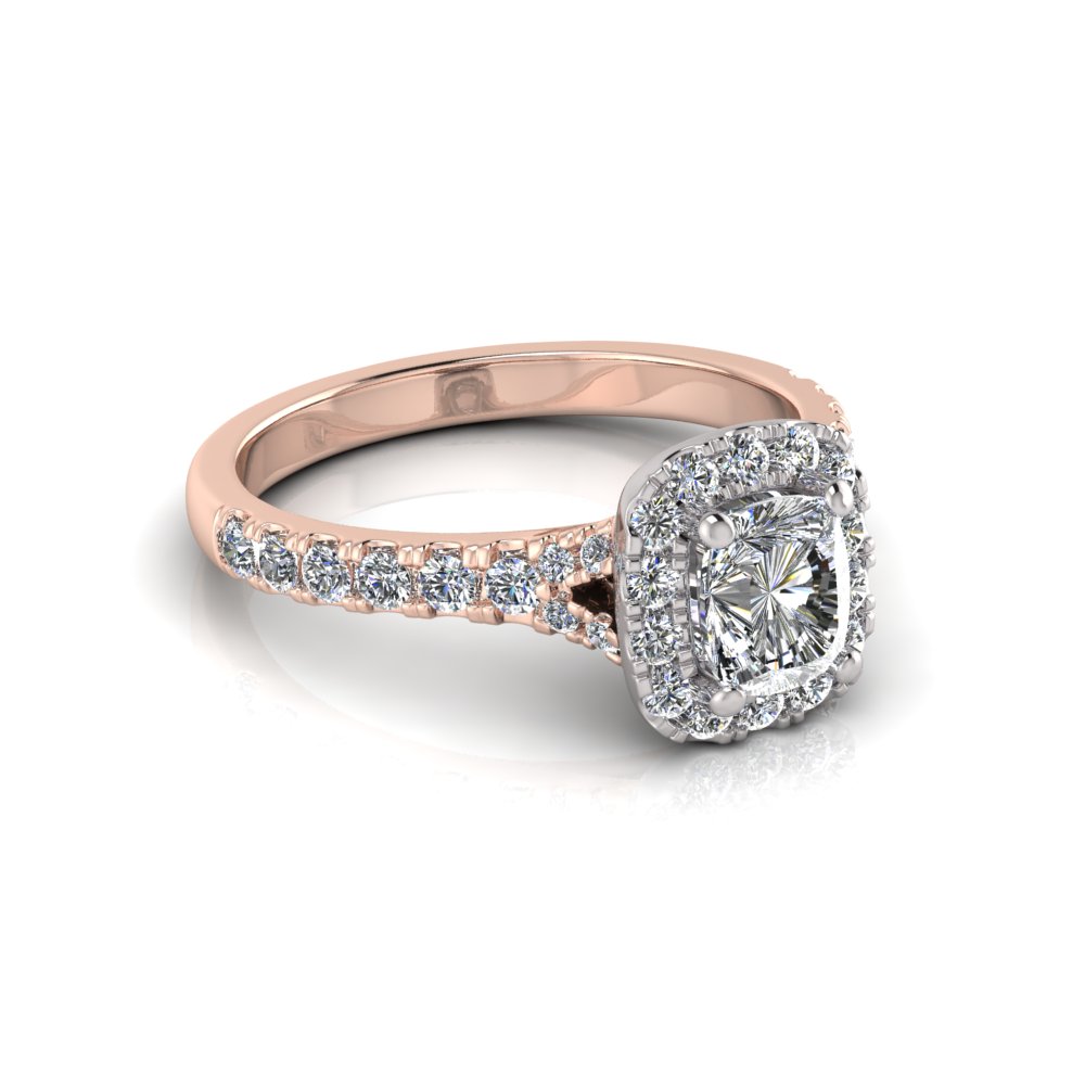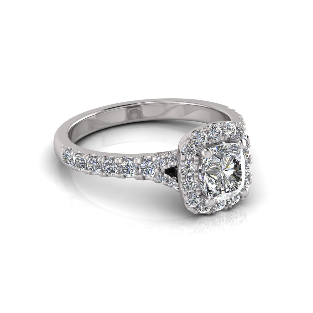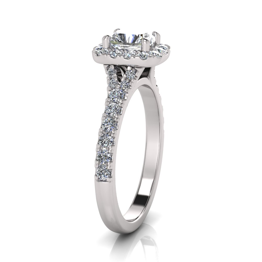 Rectangular Cushion Halo Scalloped Set Split Ring