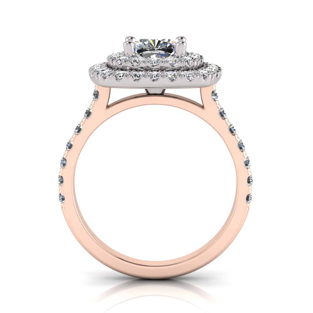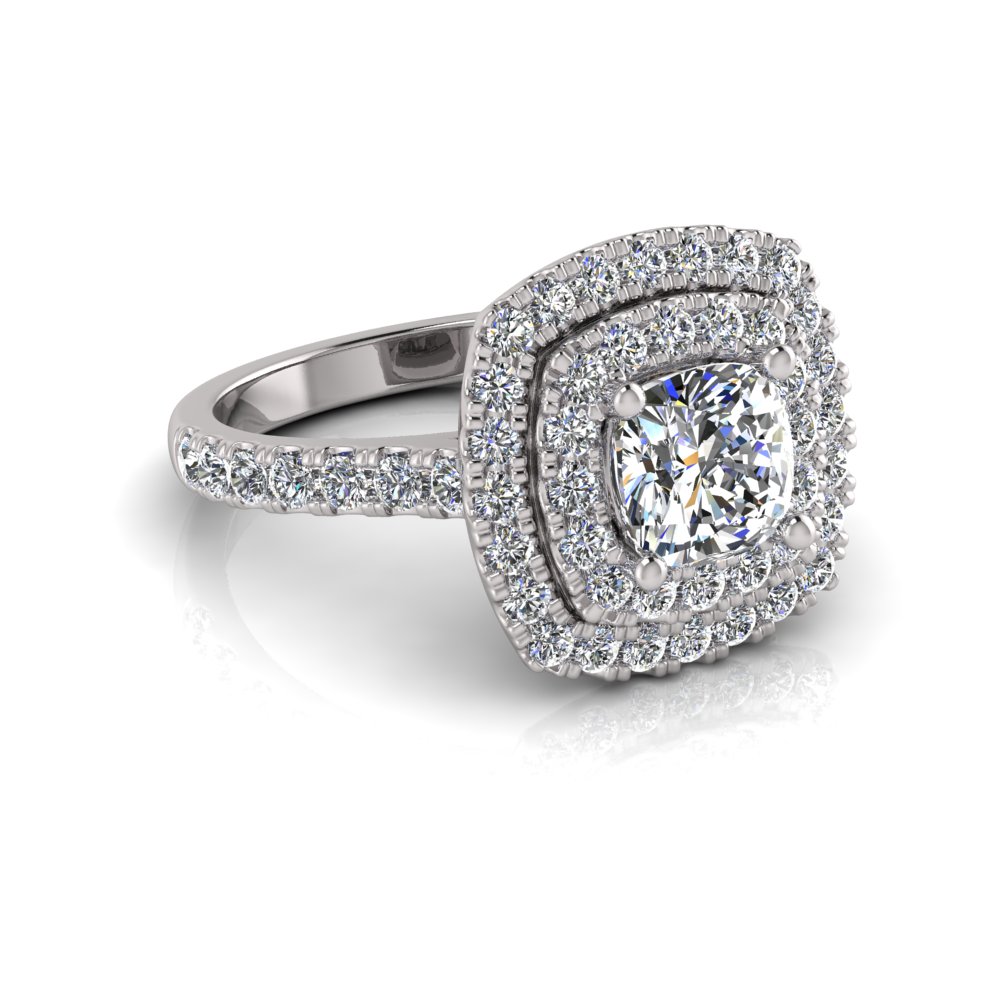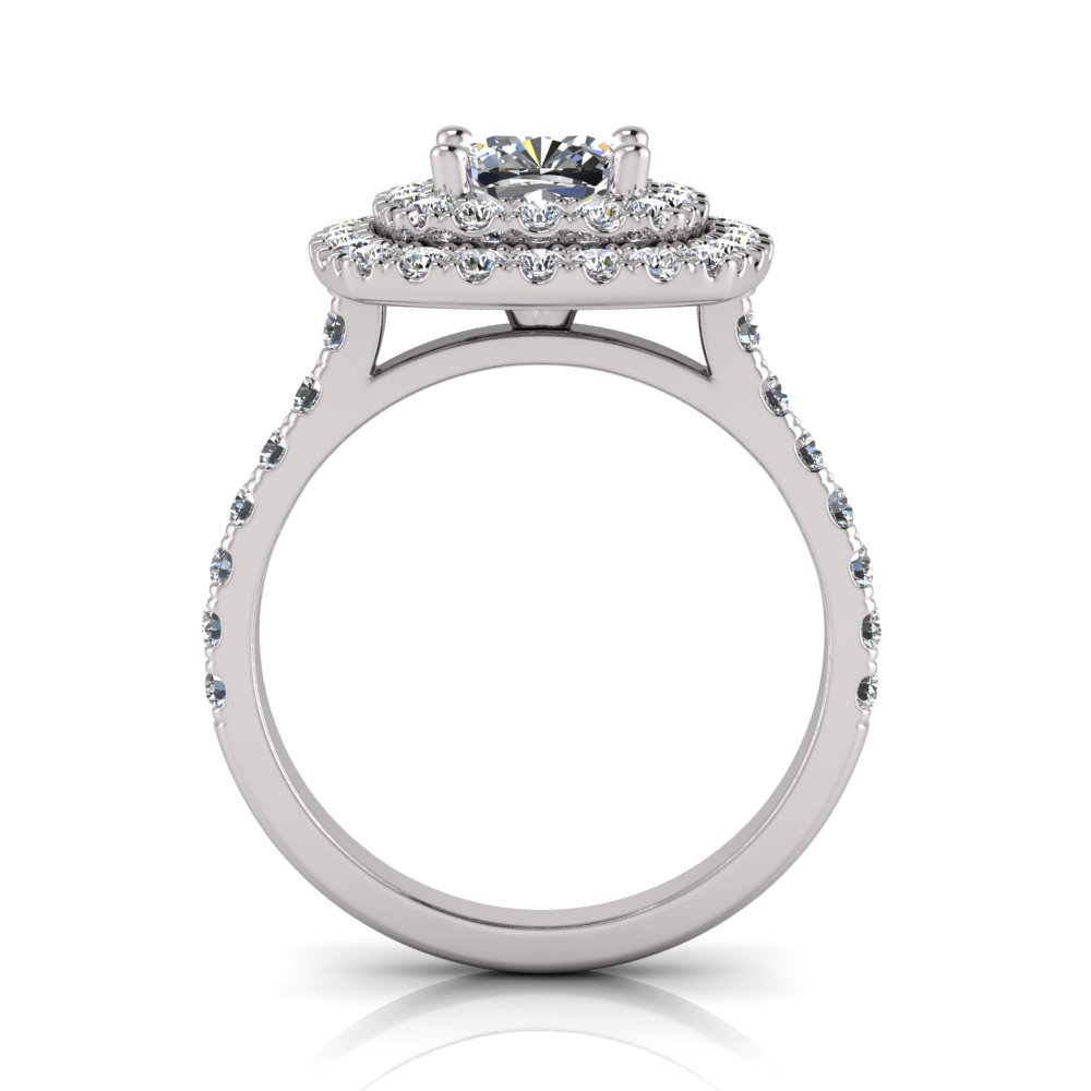 Cushion Double Halo Scalloped Set Ring
