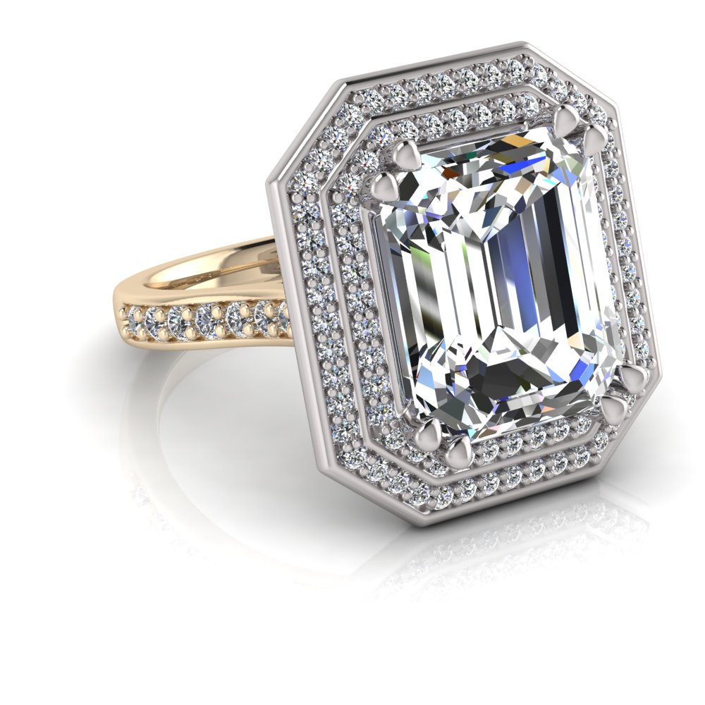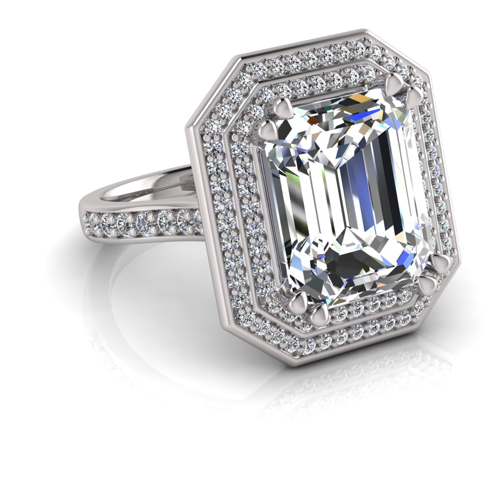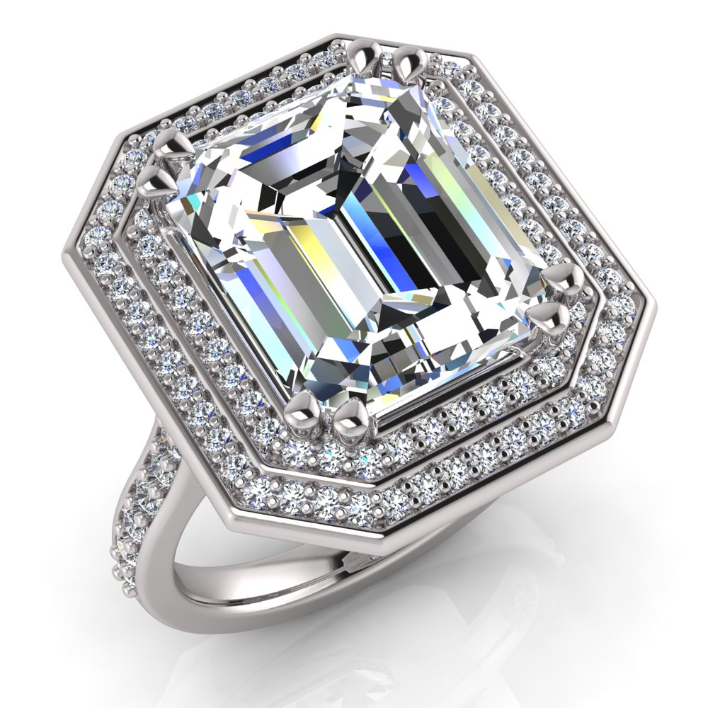 Emerald Claw Set & Double Halo Pave Set Ring