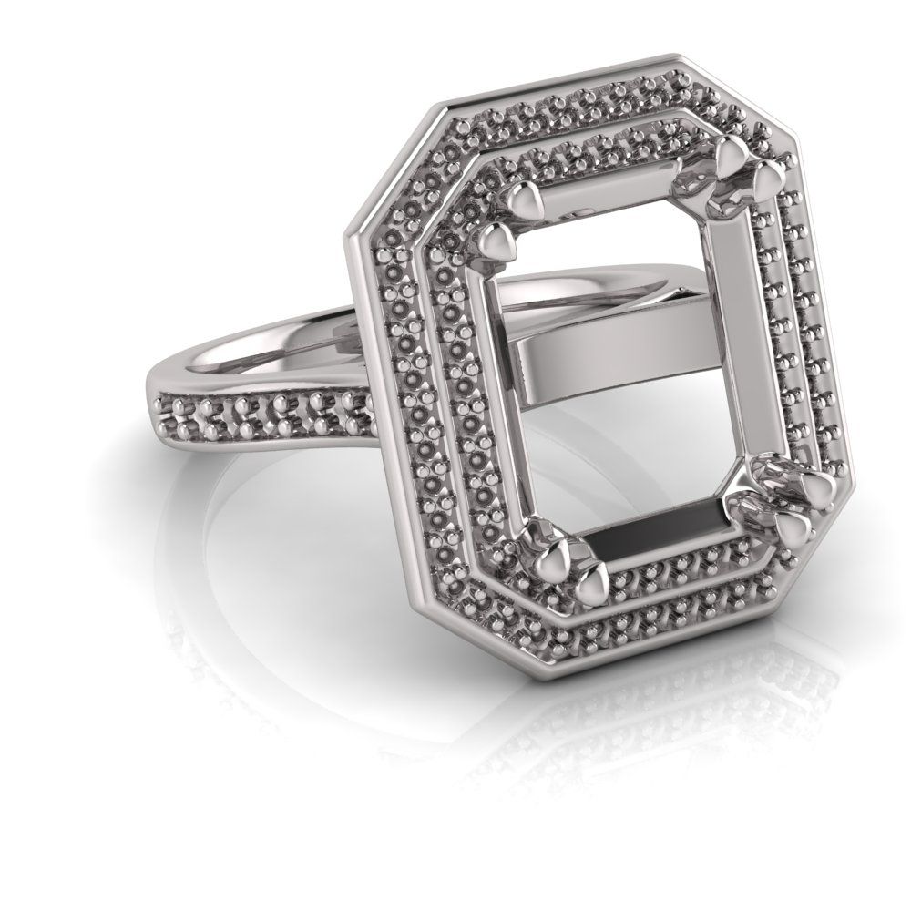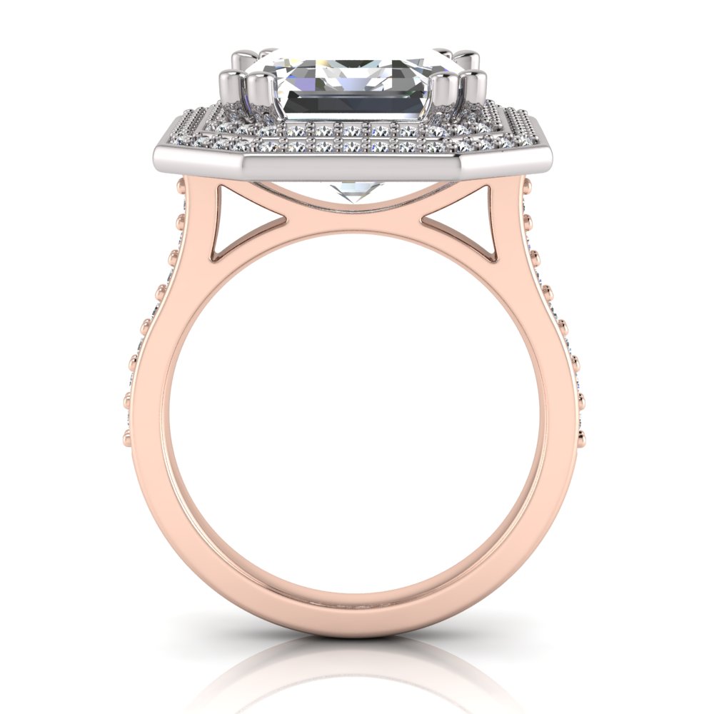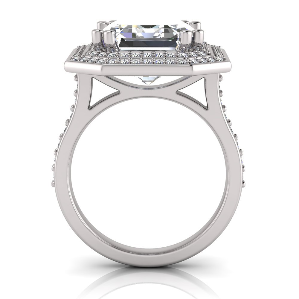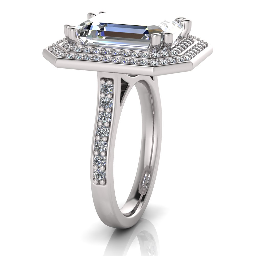 Emerald Claw Set & Double Halo Pave Set Ring