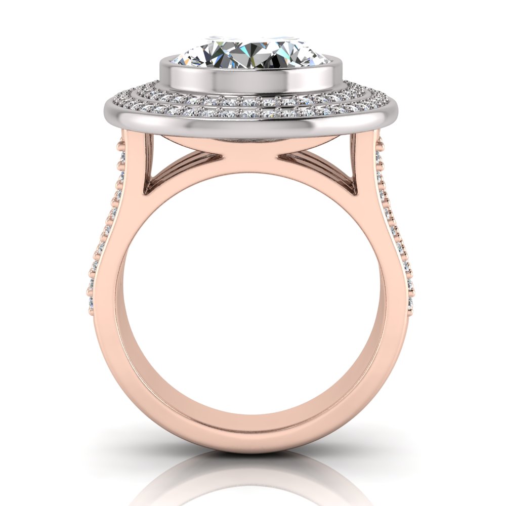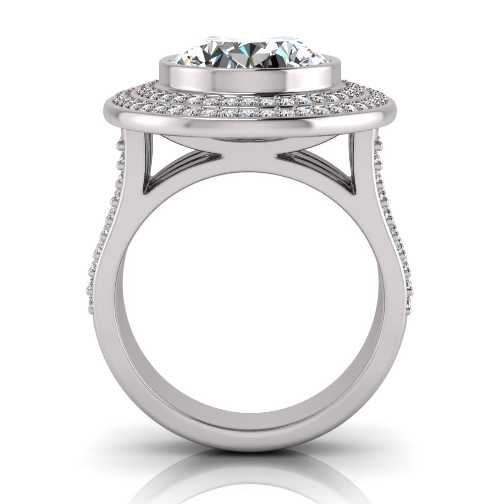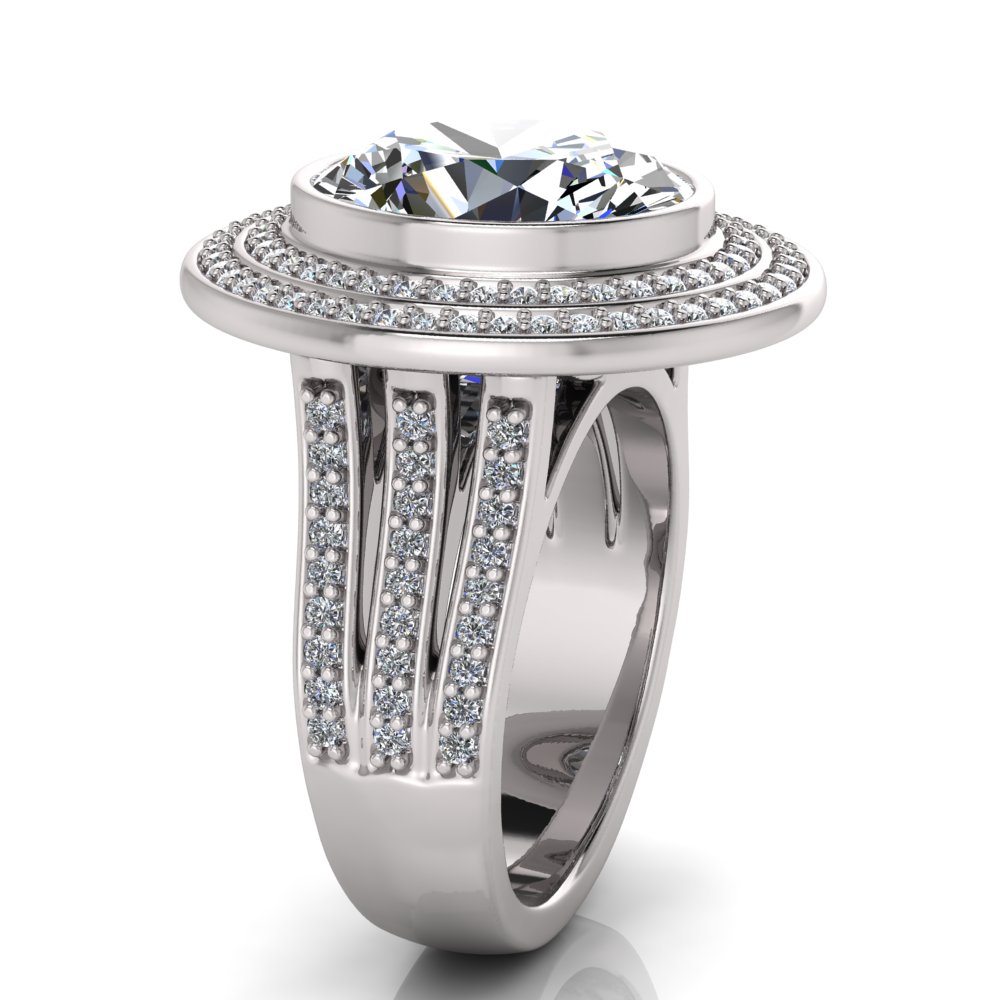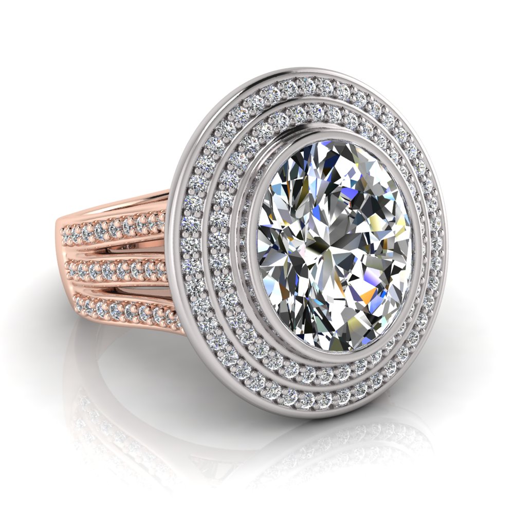 Oval Bezel Set & Double Halo Pave Set Ring
