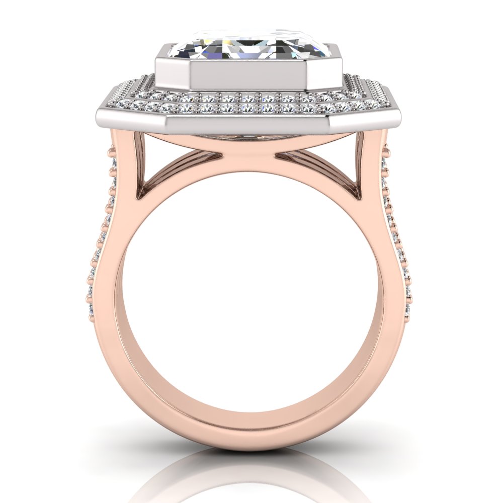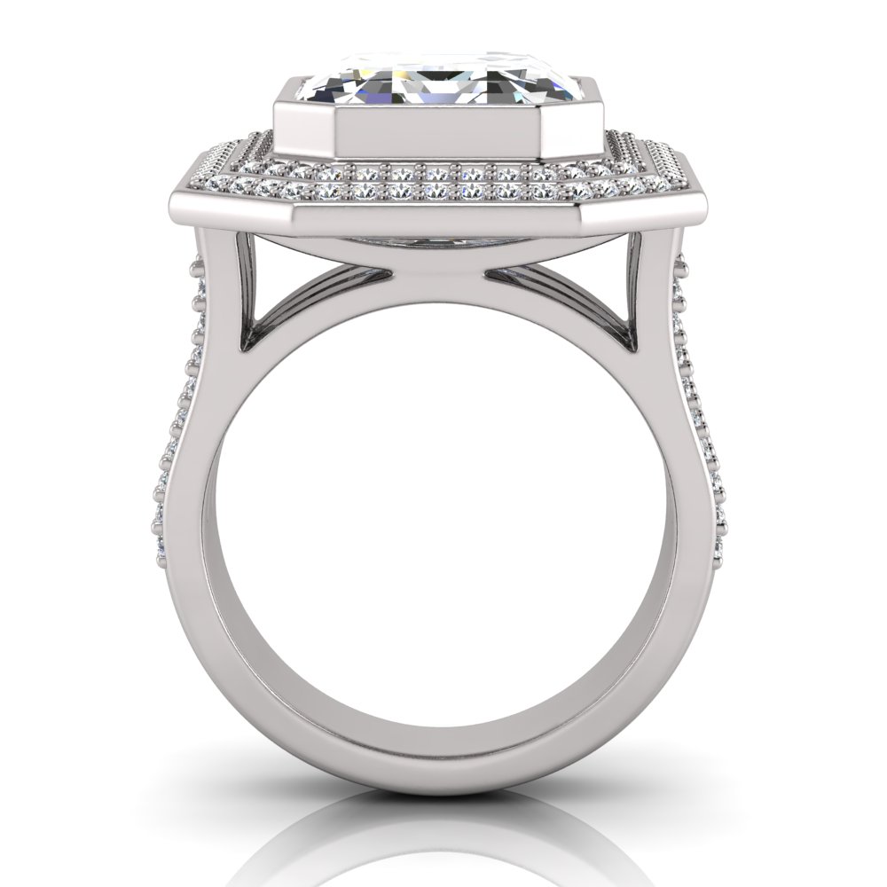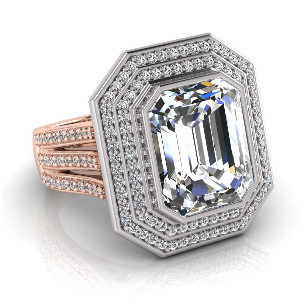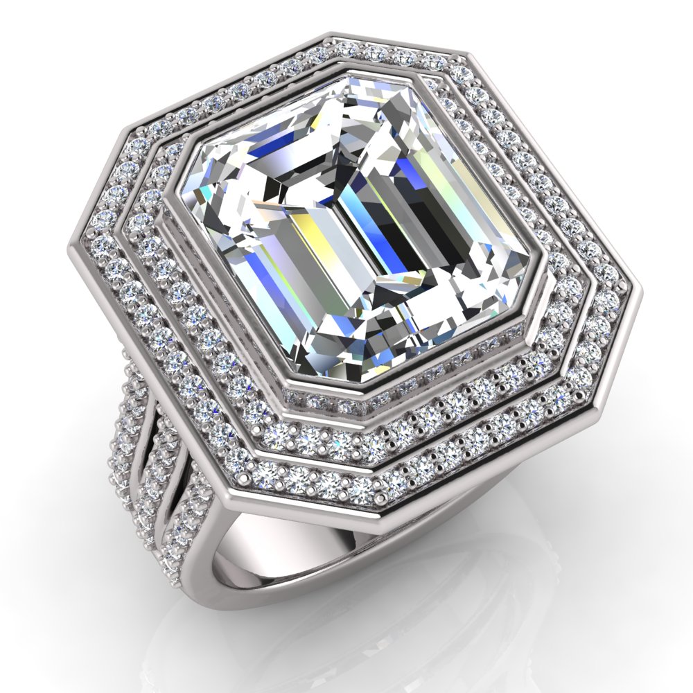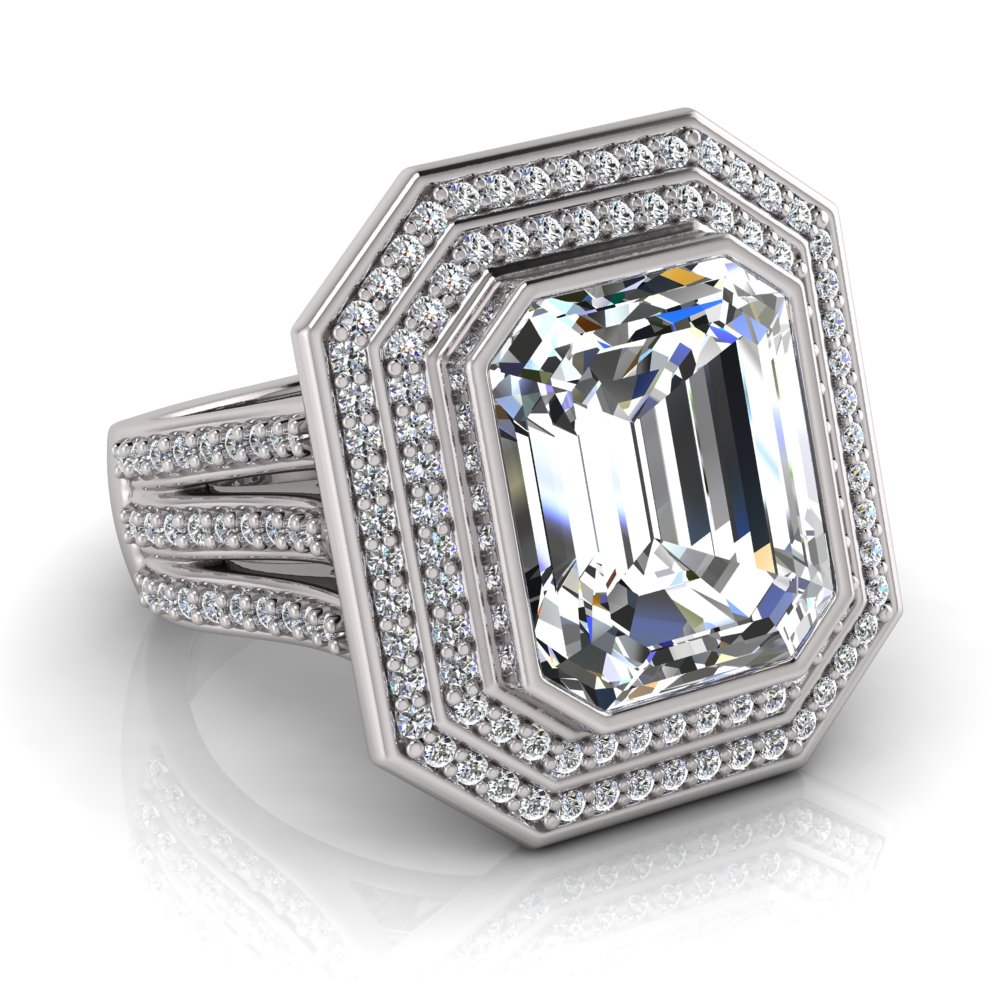 Emerald Bezel Set & Double Halo Pave Set Ring