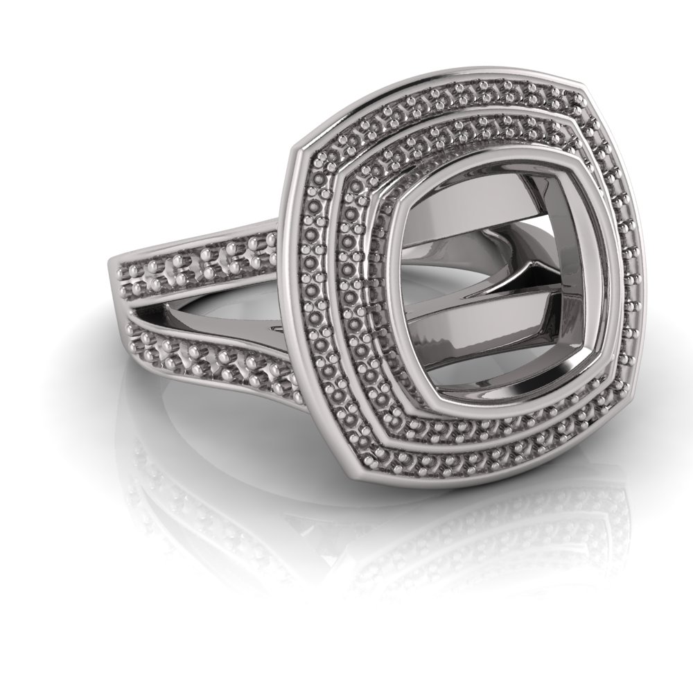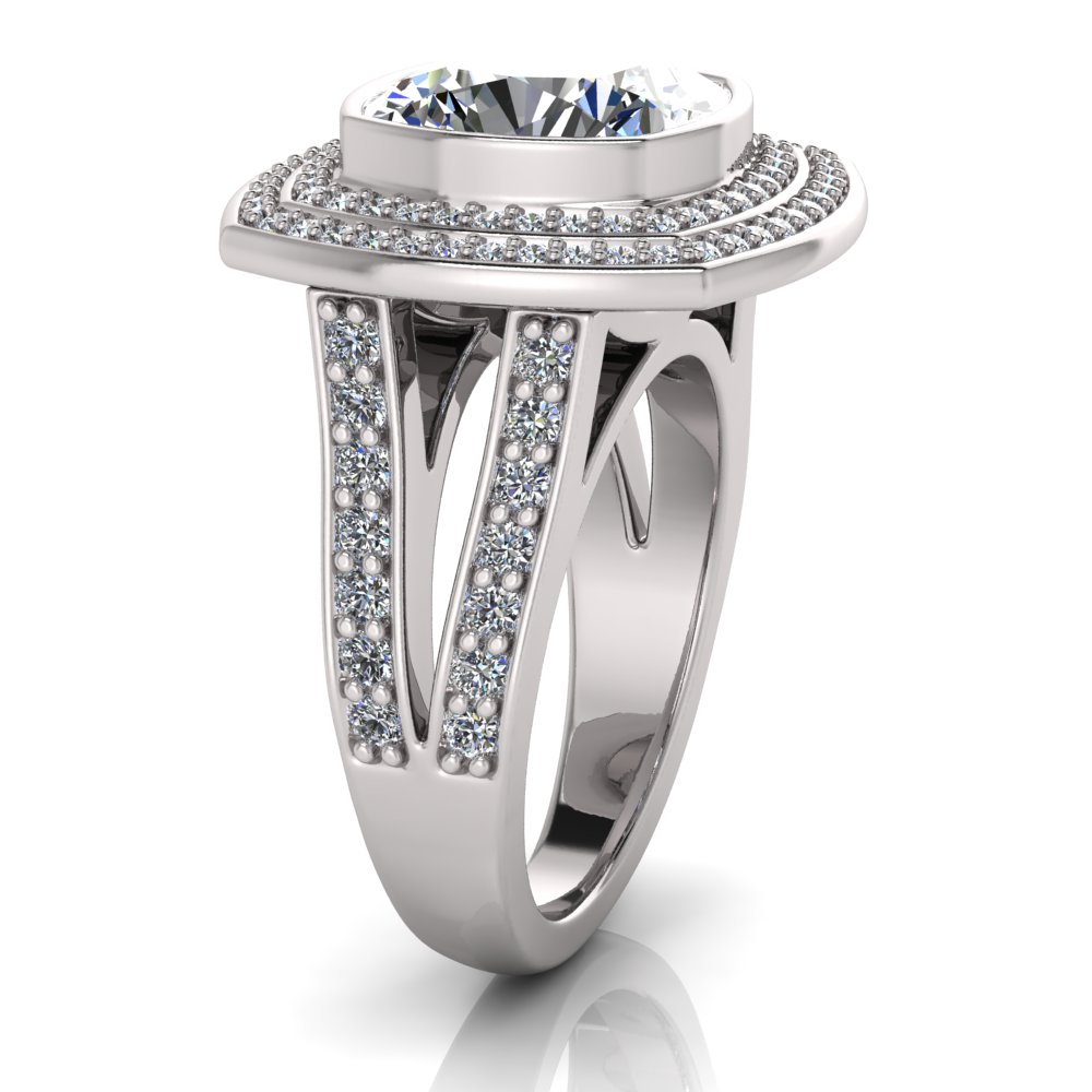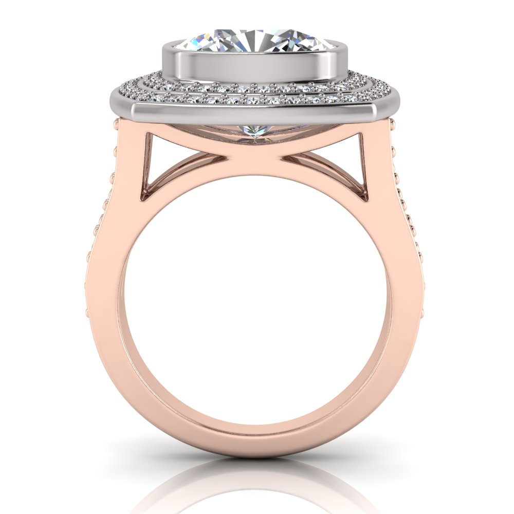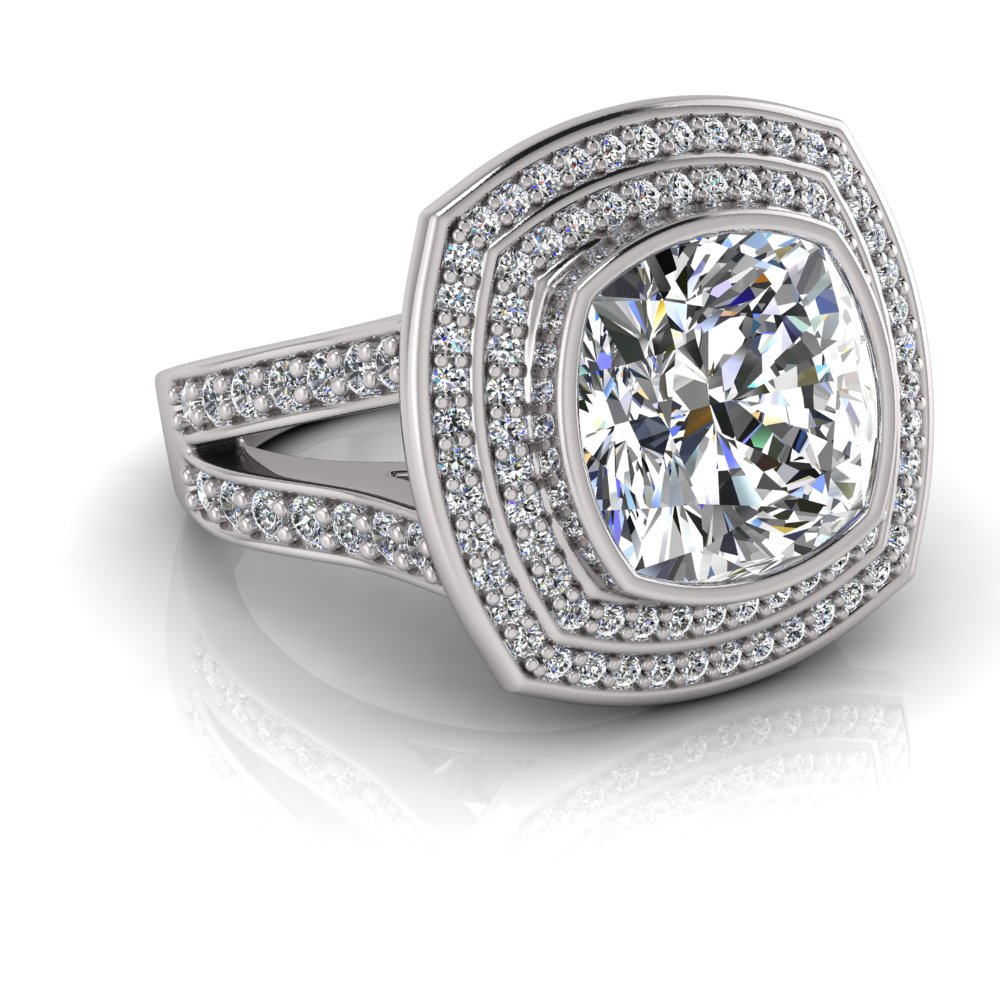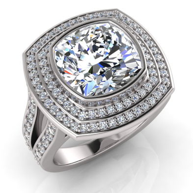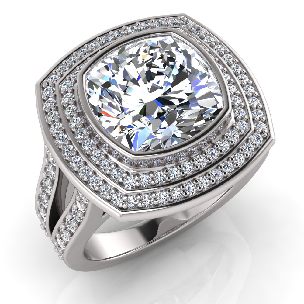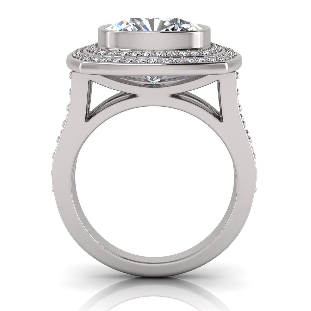 Cushion Bezel Set & Double Halo Pave Set Ring