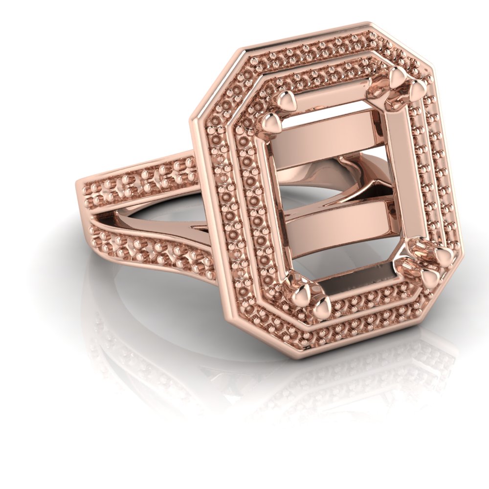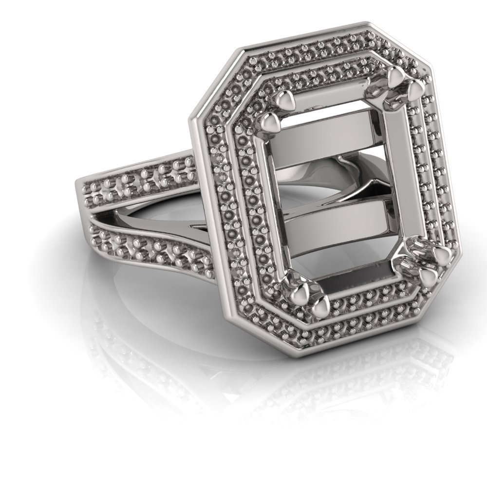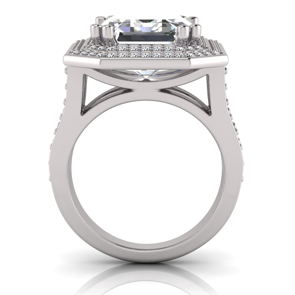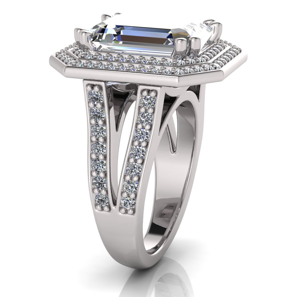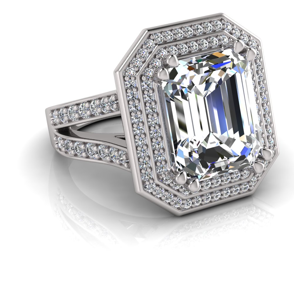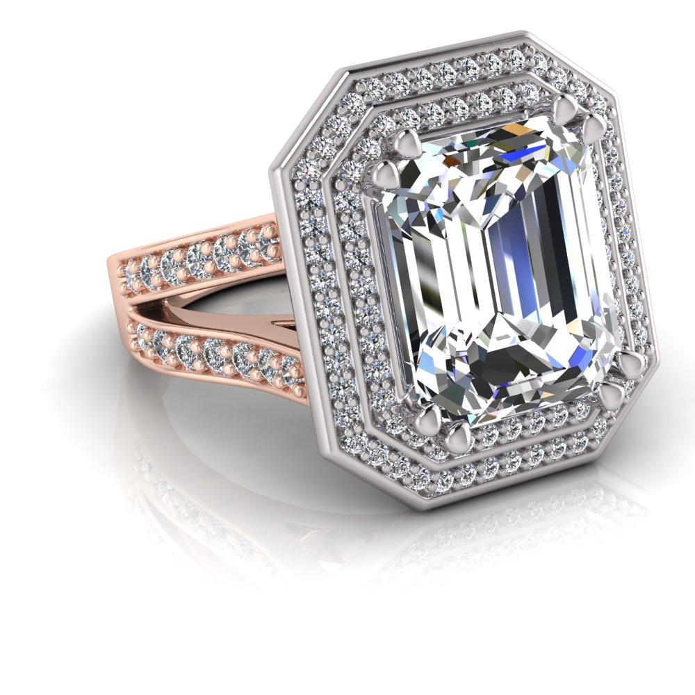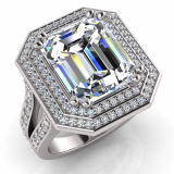 Emerald Claw Set & Double Halo Pave Set Ring