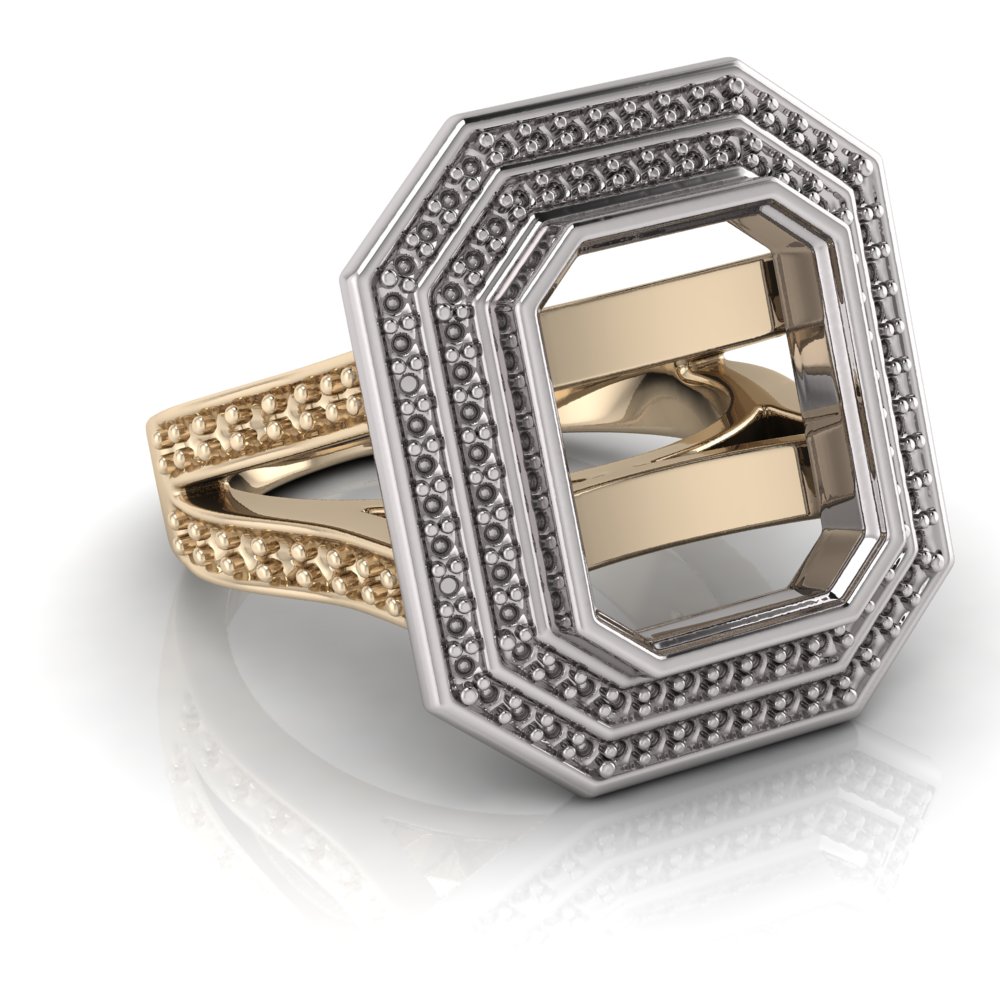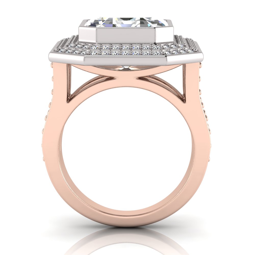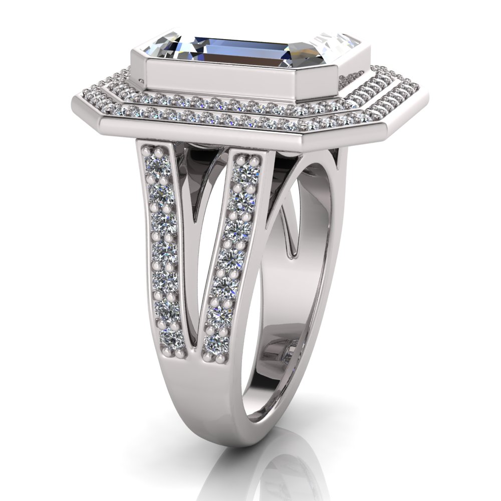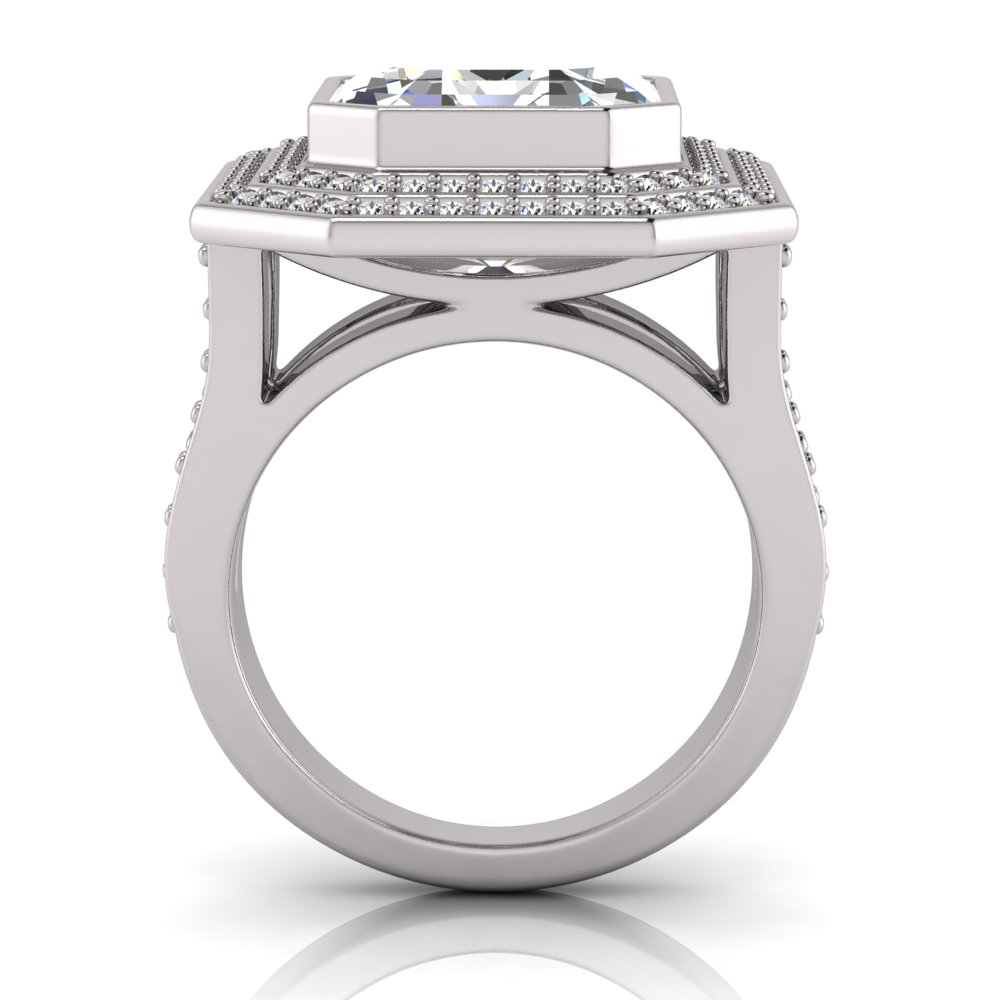 Emerald Bezel Set & Double Halo Pave Set Ring