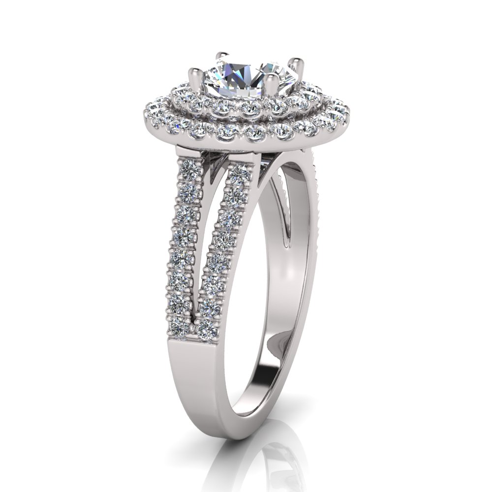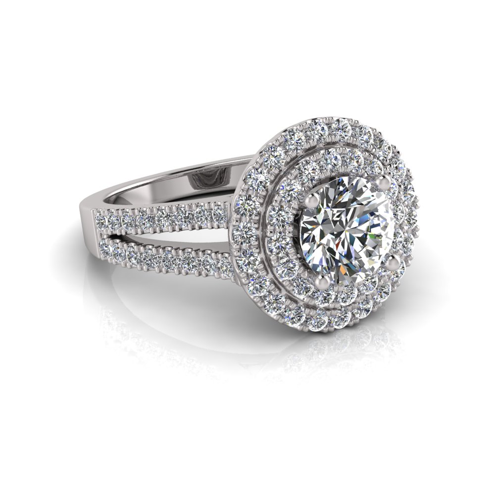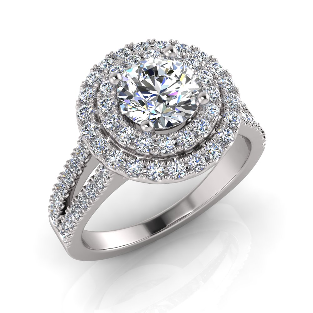 Round Double Halo Scalloped Set Ring