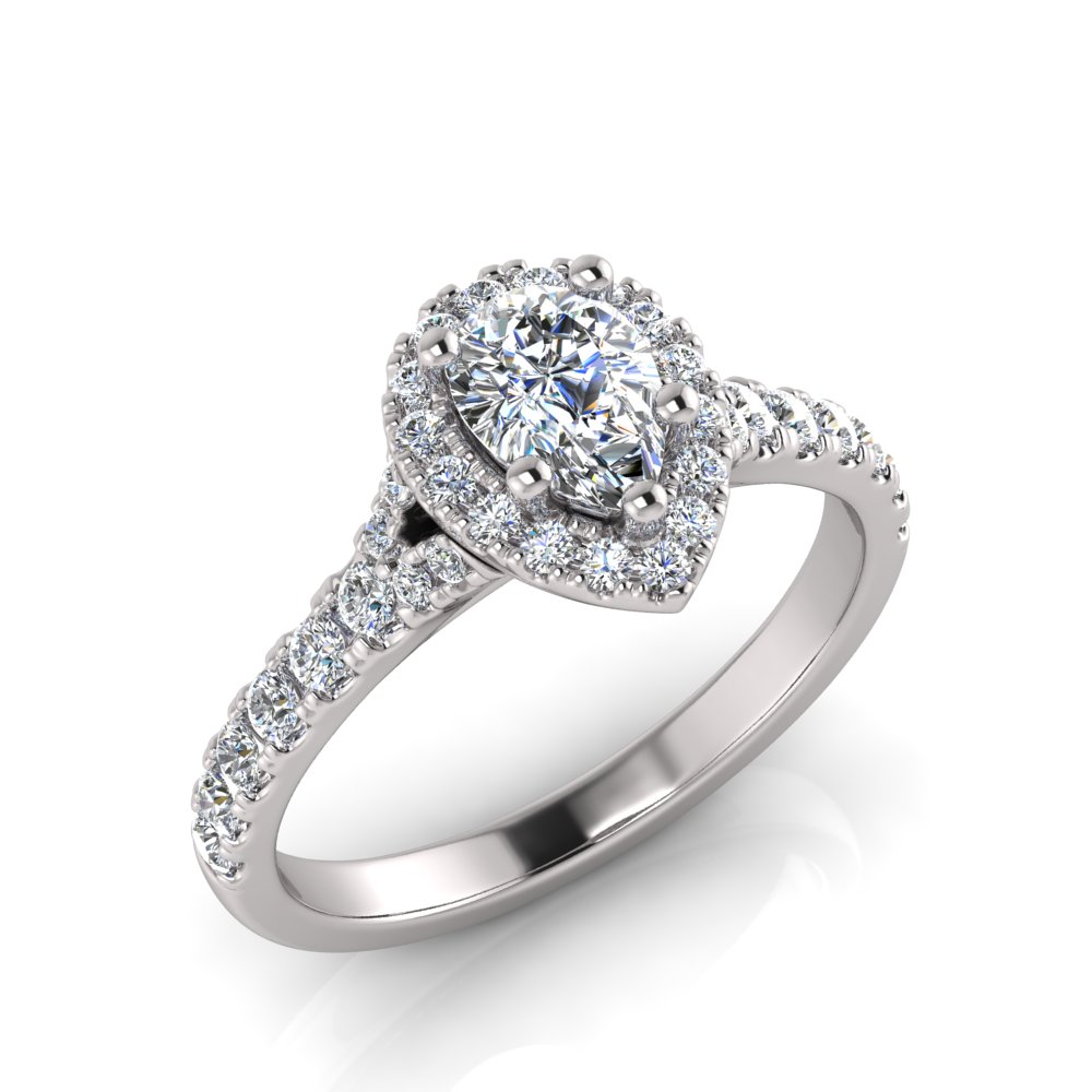 Pear Halo Scalloped Set Split Ring
