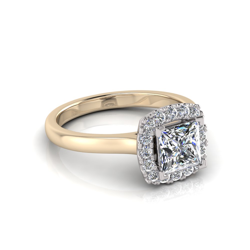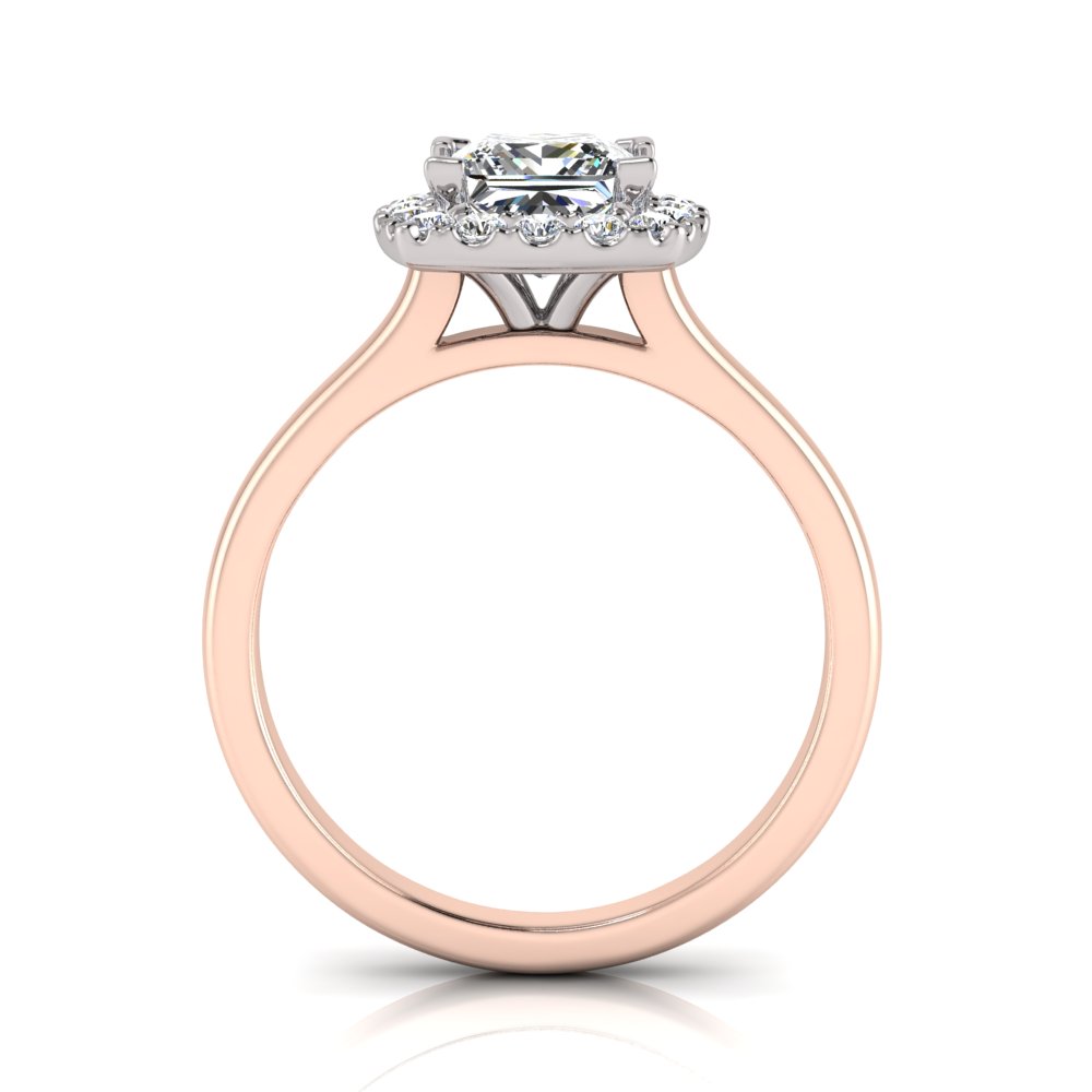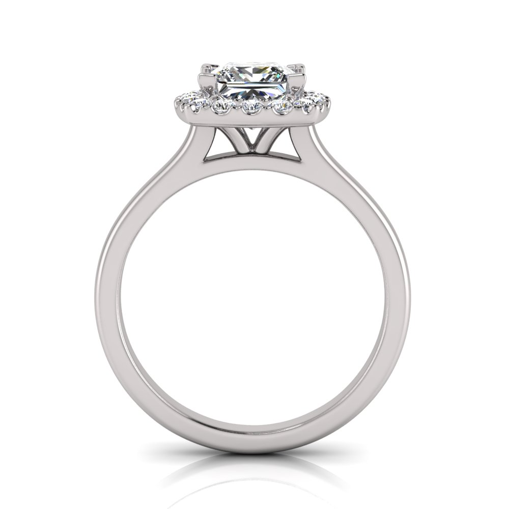 Princess With Cushion Halo Scalloped Set I Half Round Shank
