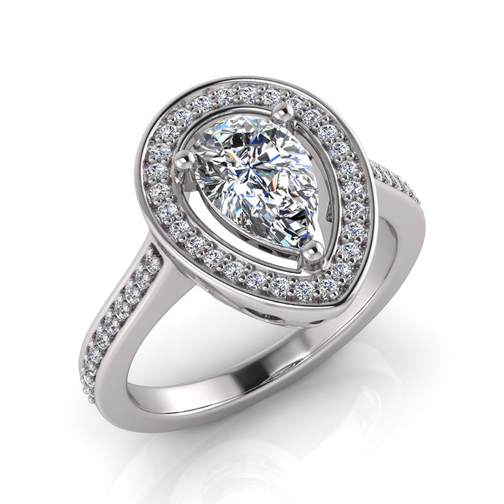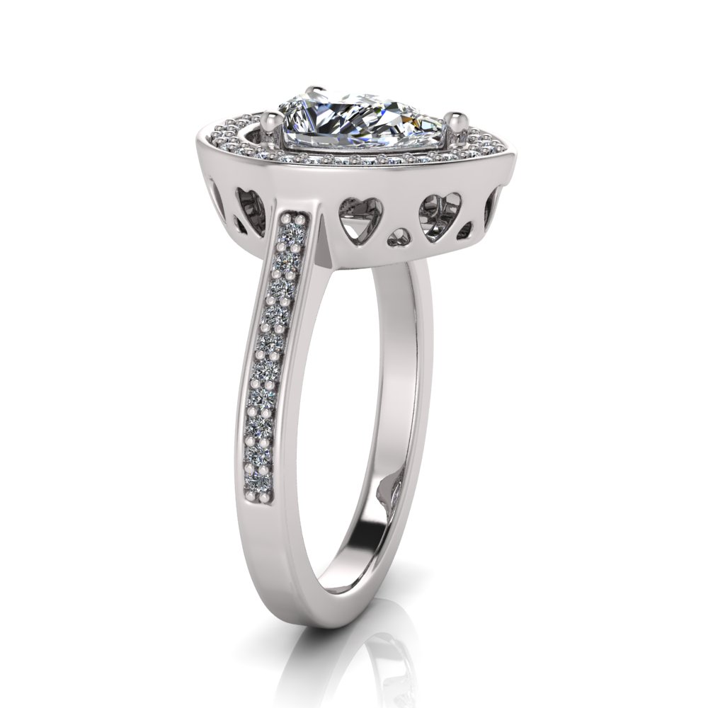 Pear Halo with Heart Cut Outs | Pave Set Shank