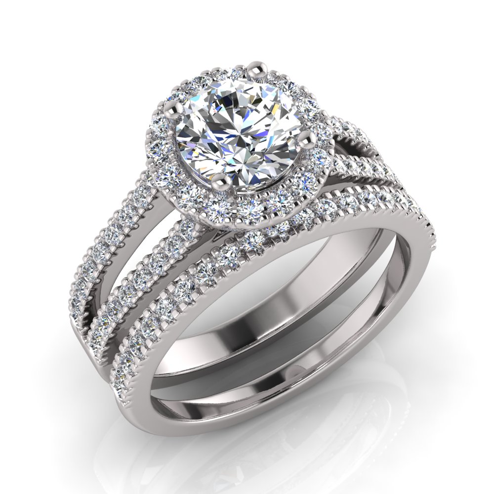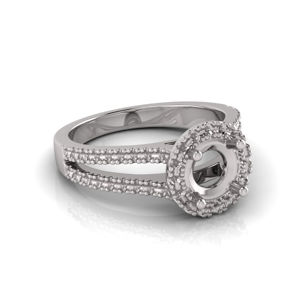 Round Halo Scalloped Set | Half Round Diamond Set Split Shank