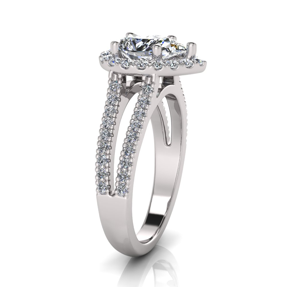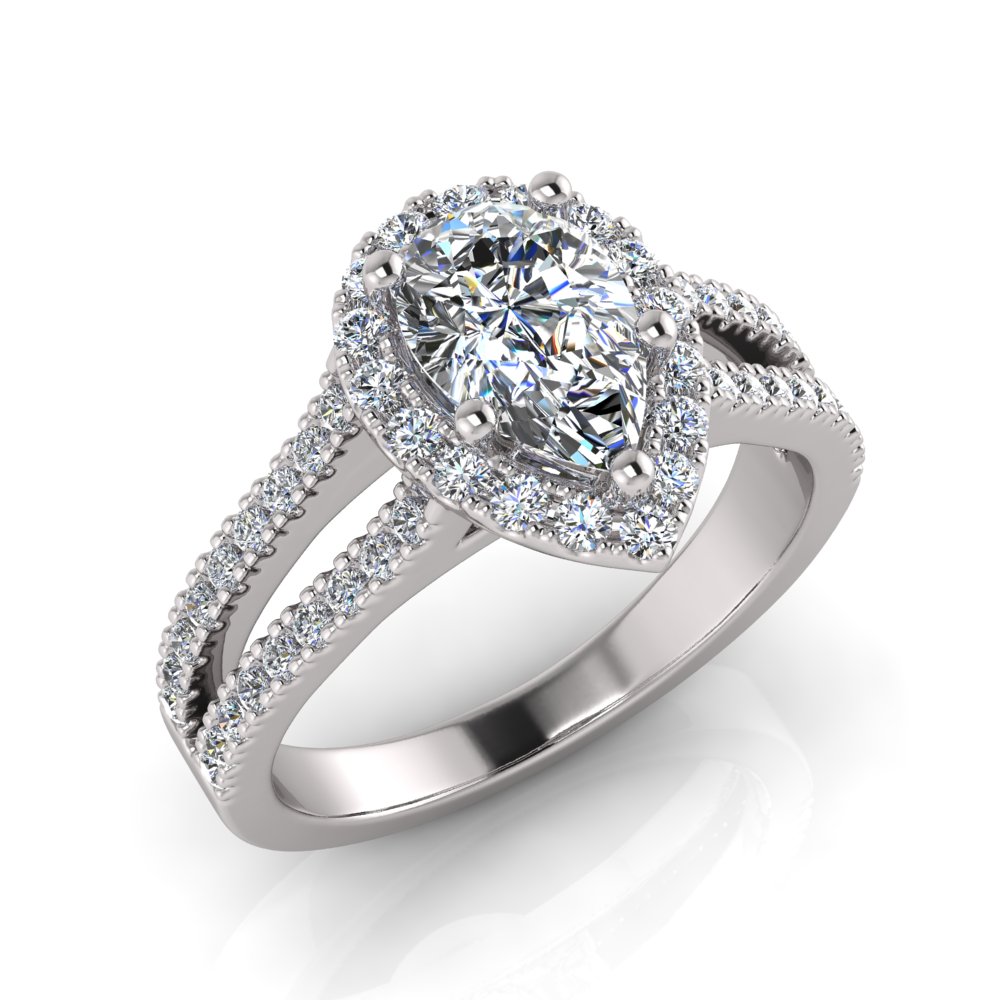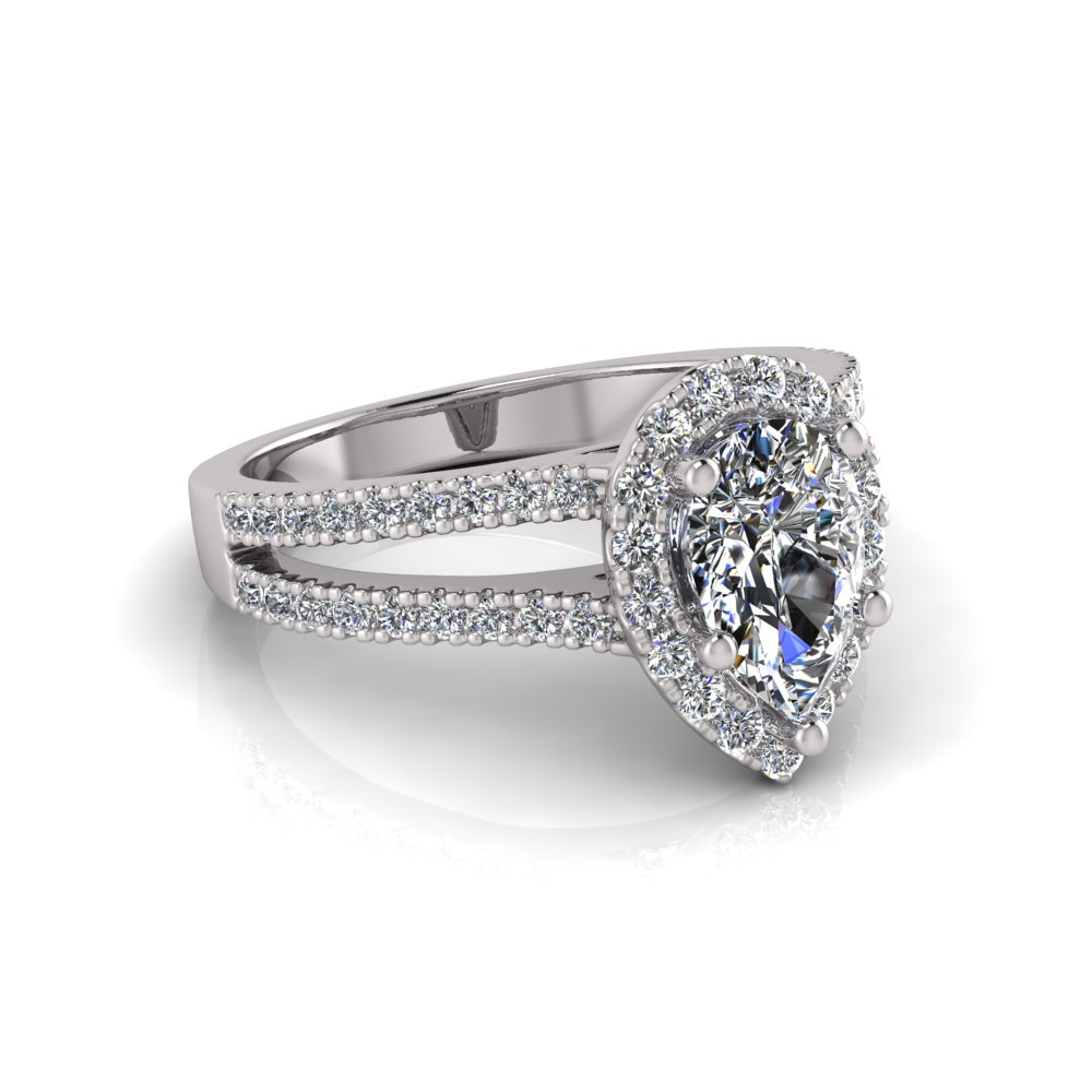 Pear Halo Scalloped Set | Half Round Diamond Set Split Shank