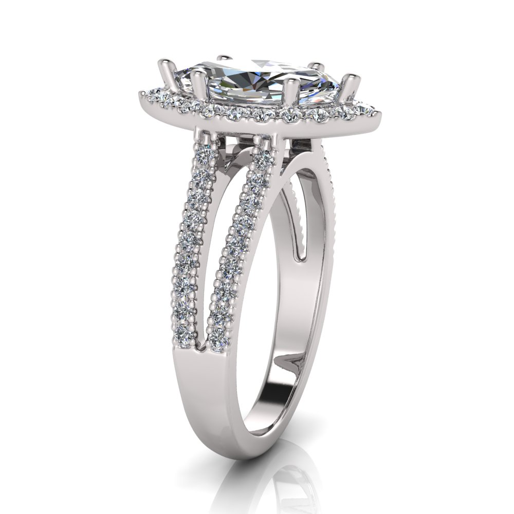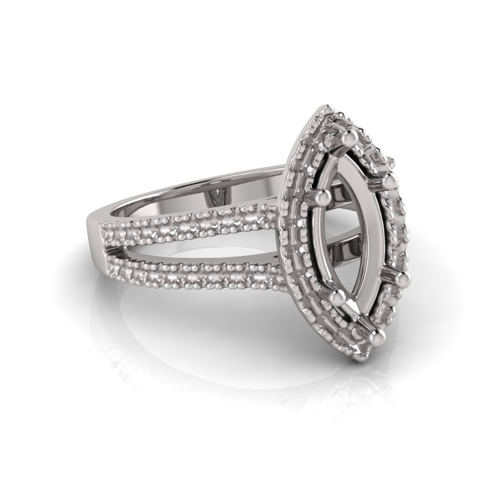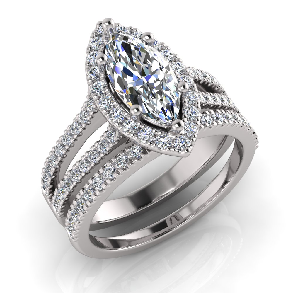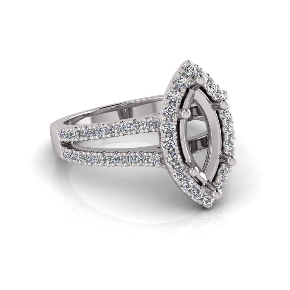 Marquise Halo Scalloped Set | Half Round Diamond Set Split Shank