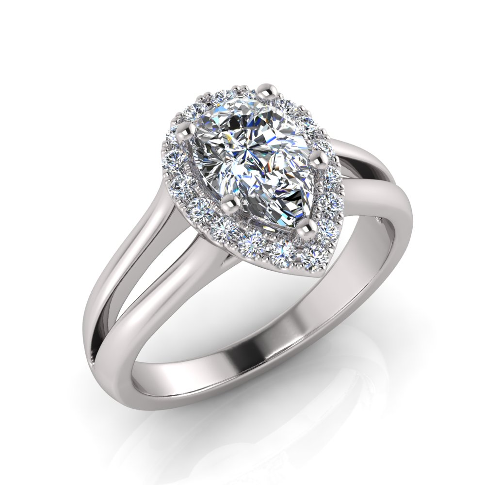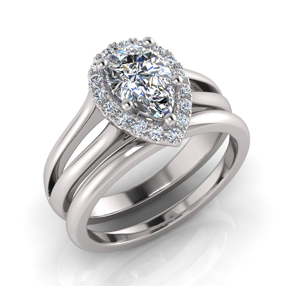Pear Halo Scalloped Set | Half Round Split Shank