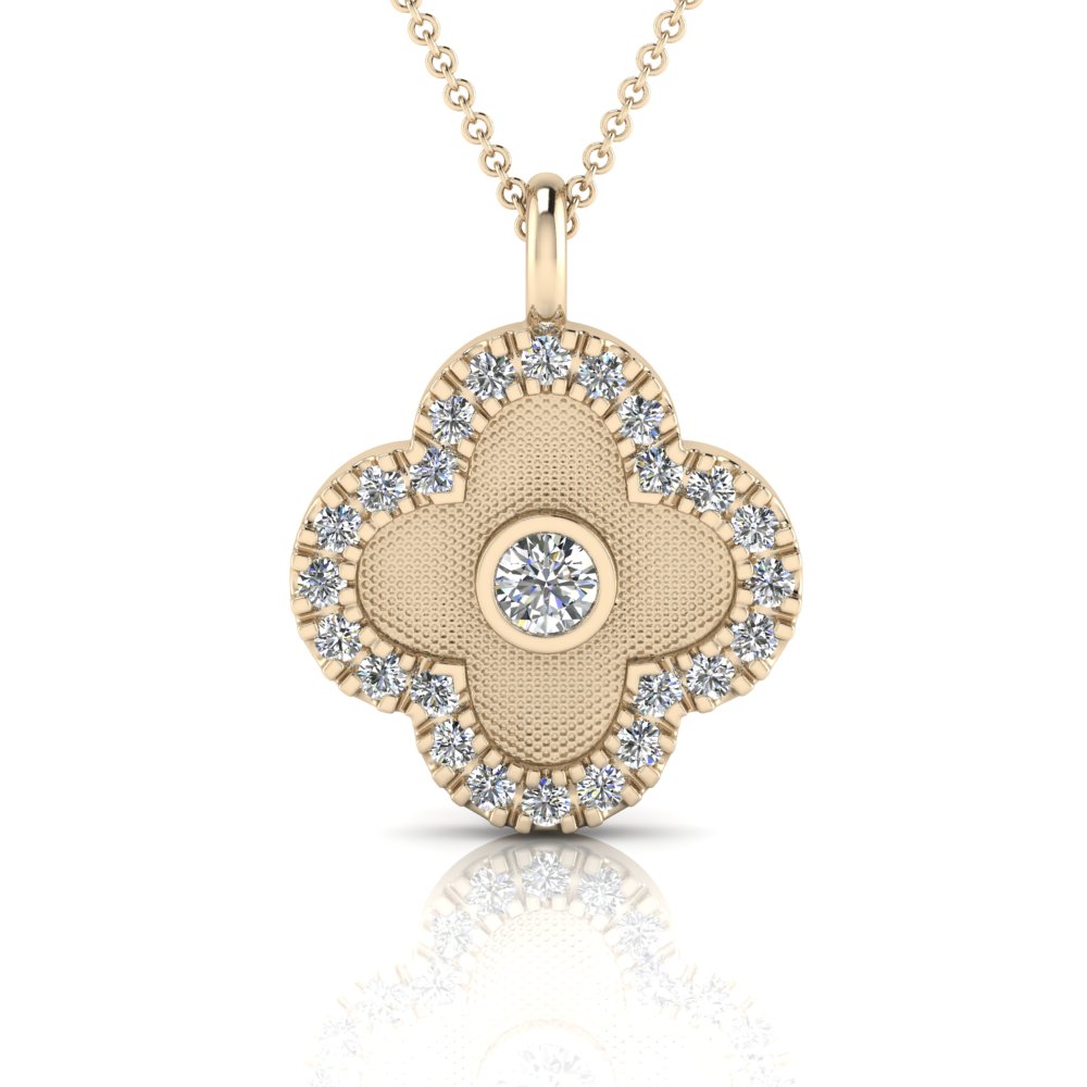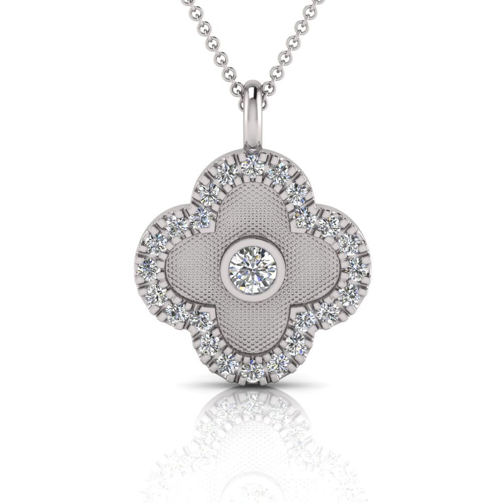 Clover Pendant With Scallop Set Edges