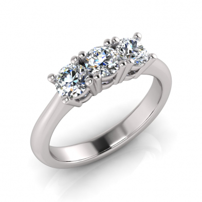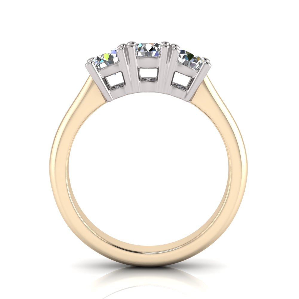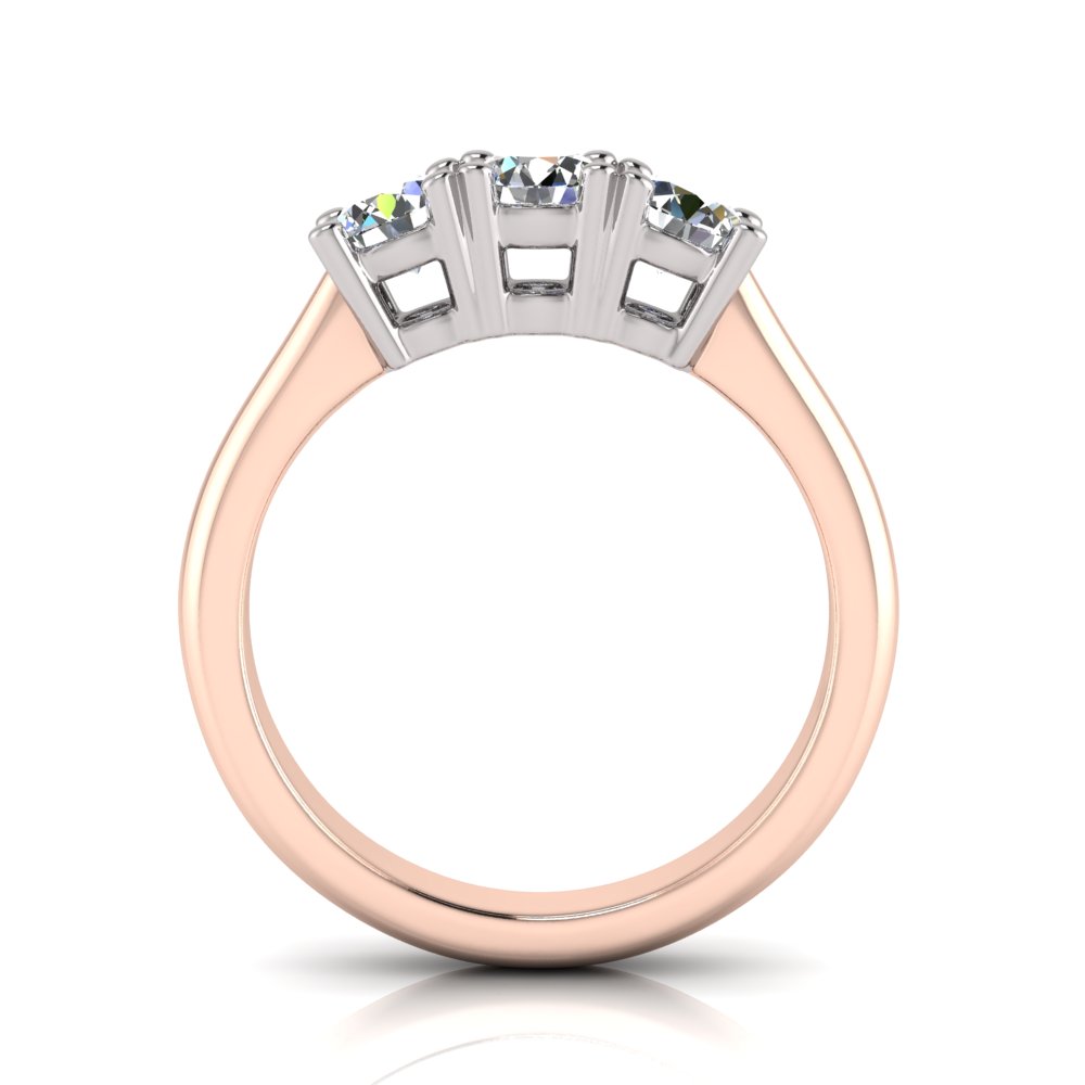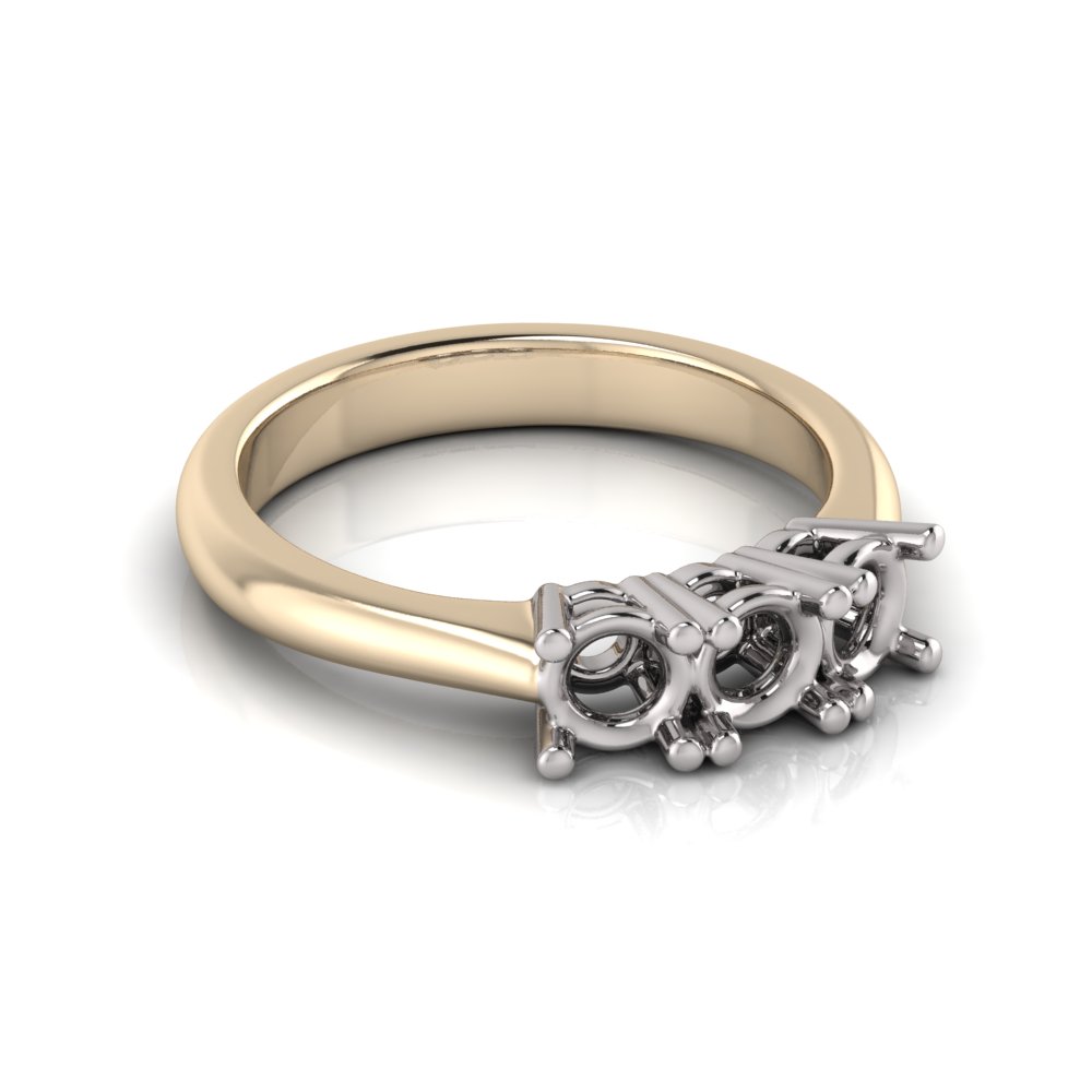 Half Round Shank | Four Claw Double Bezel Three Stone Setting