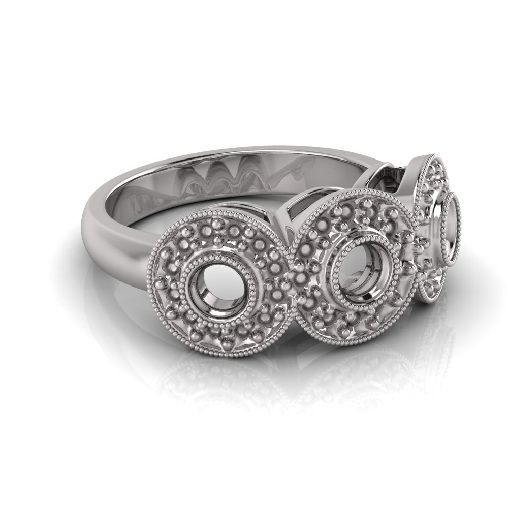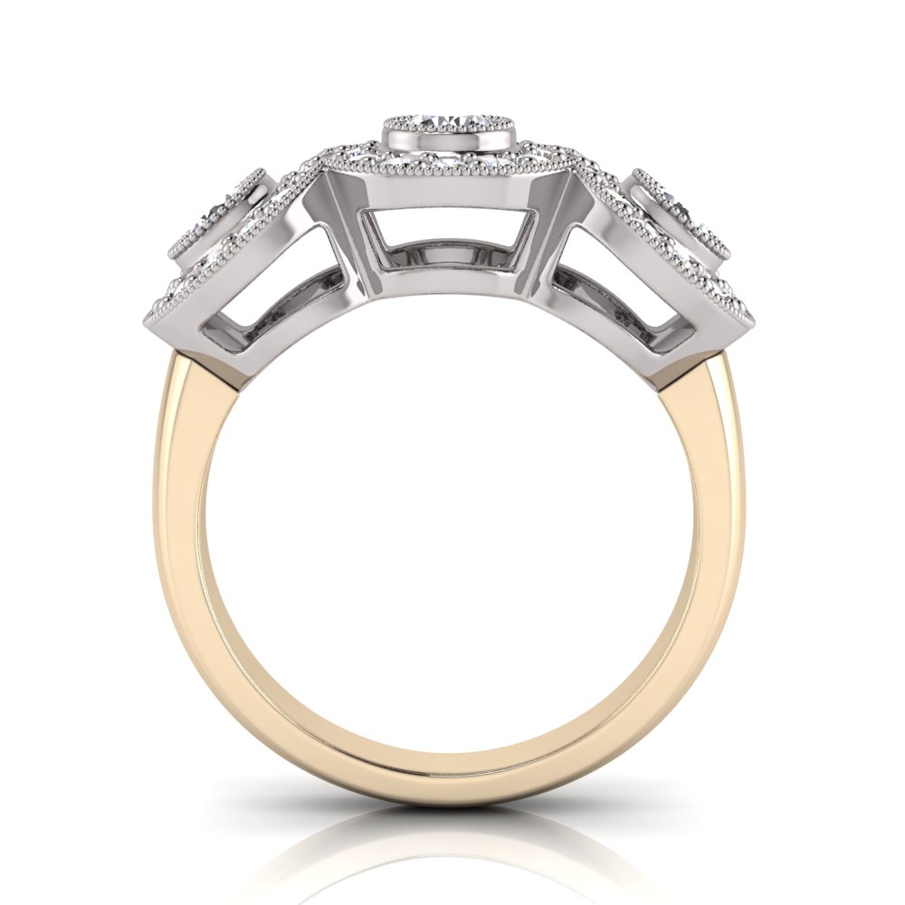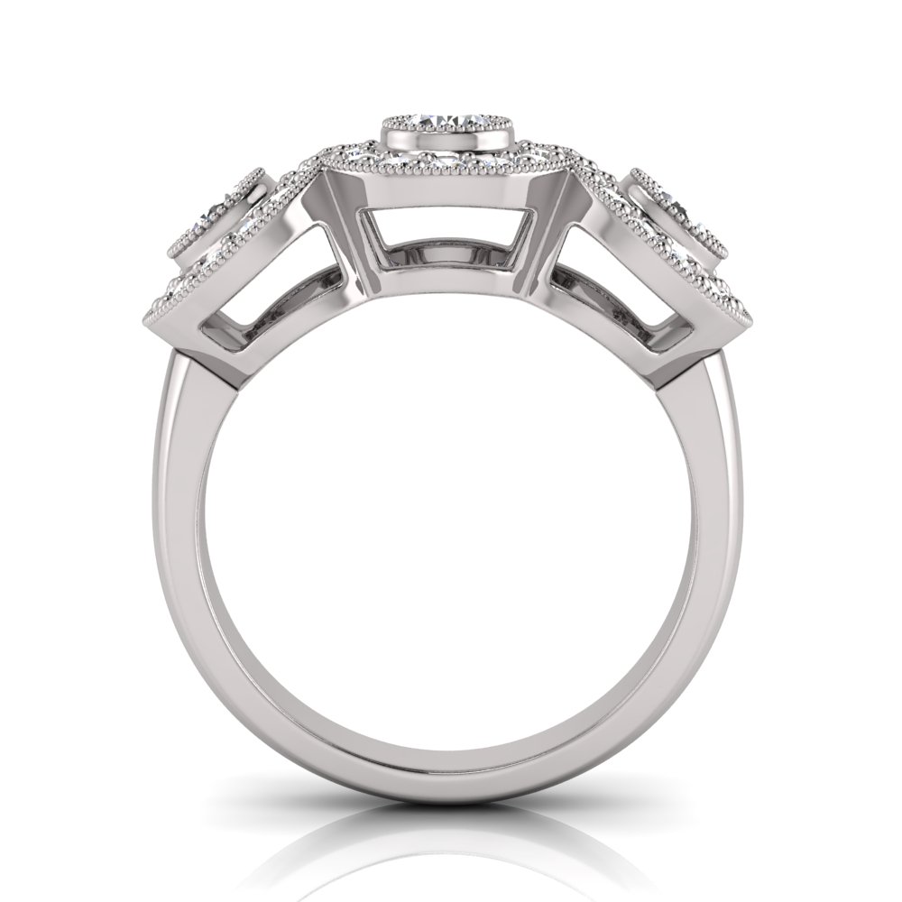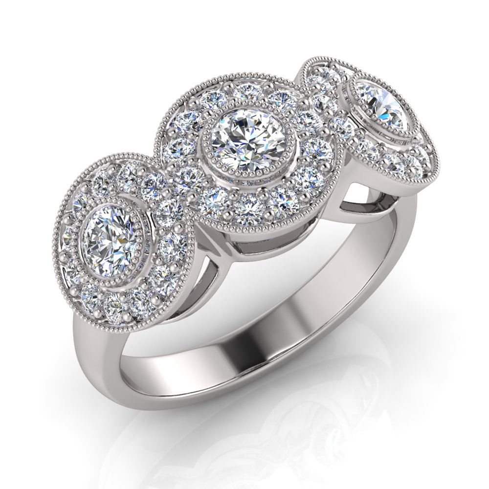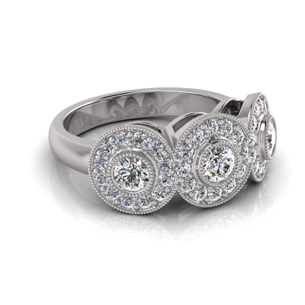 Three Stone Bezel Set Scalloped Halo | Half Round Shank
