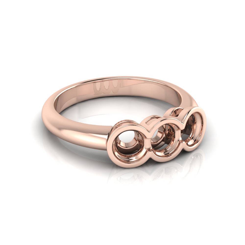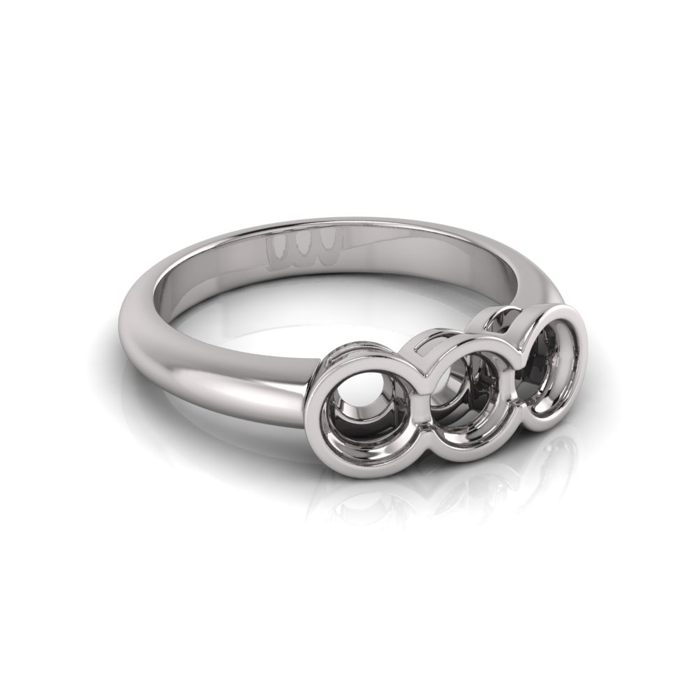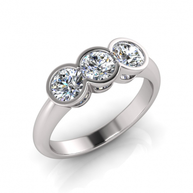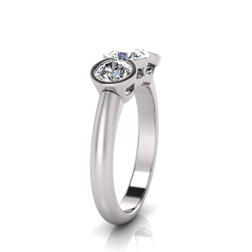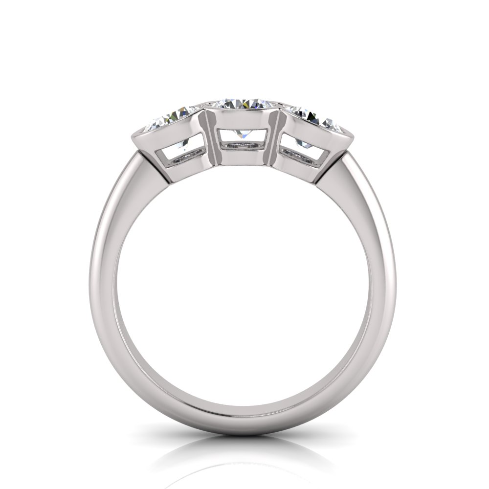 Round Three Stone Semi Bezel Set | Half Round Shank