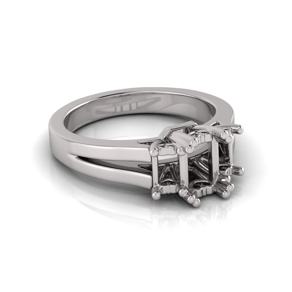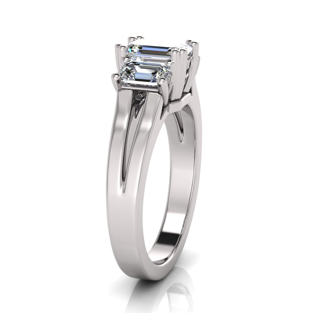Emerald Three Stone Claw Set | Split Flat Shank