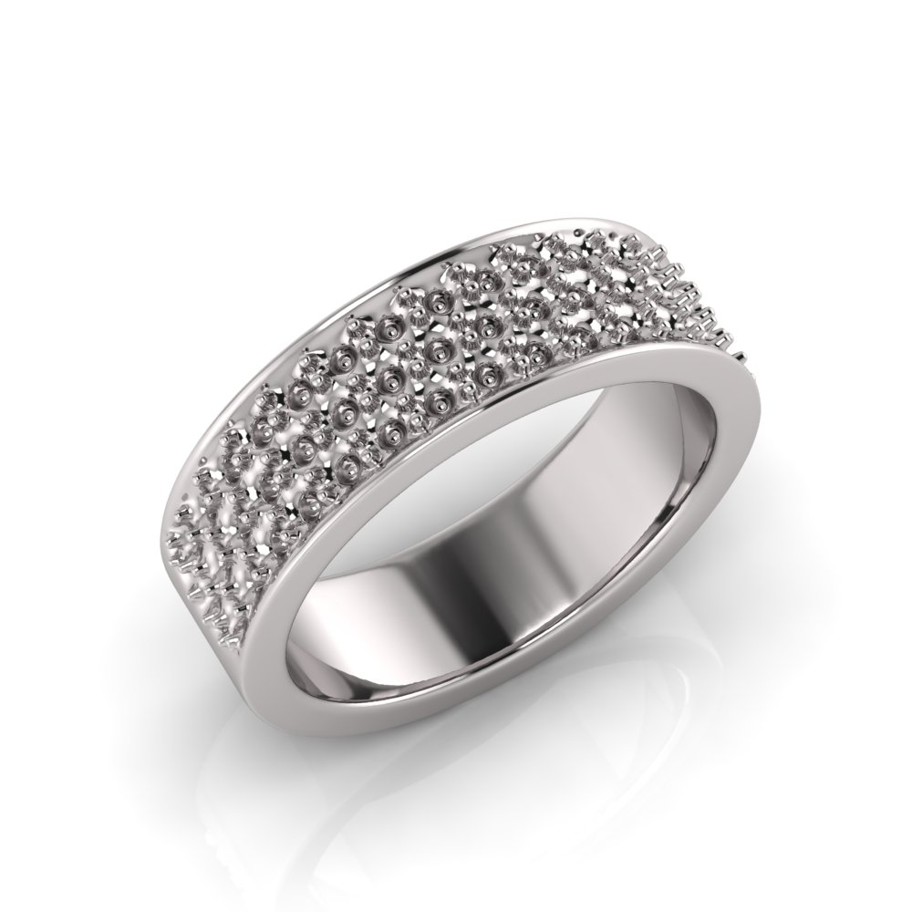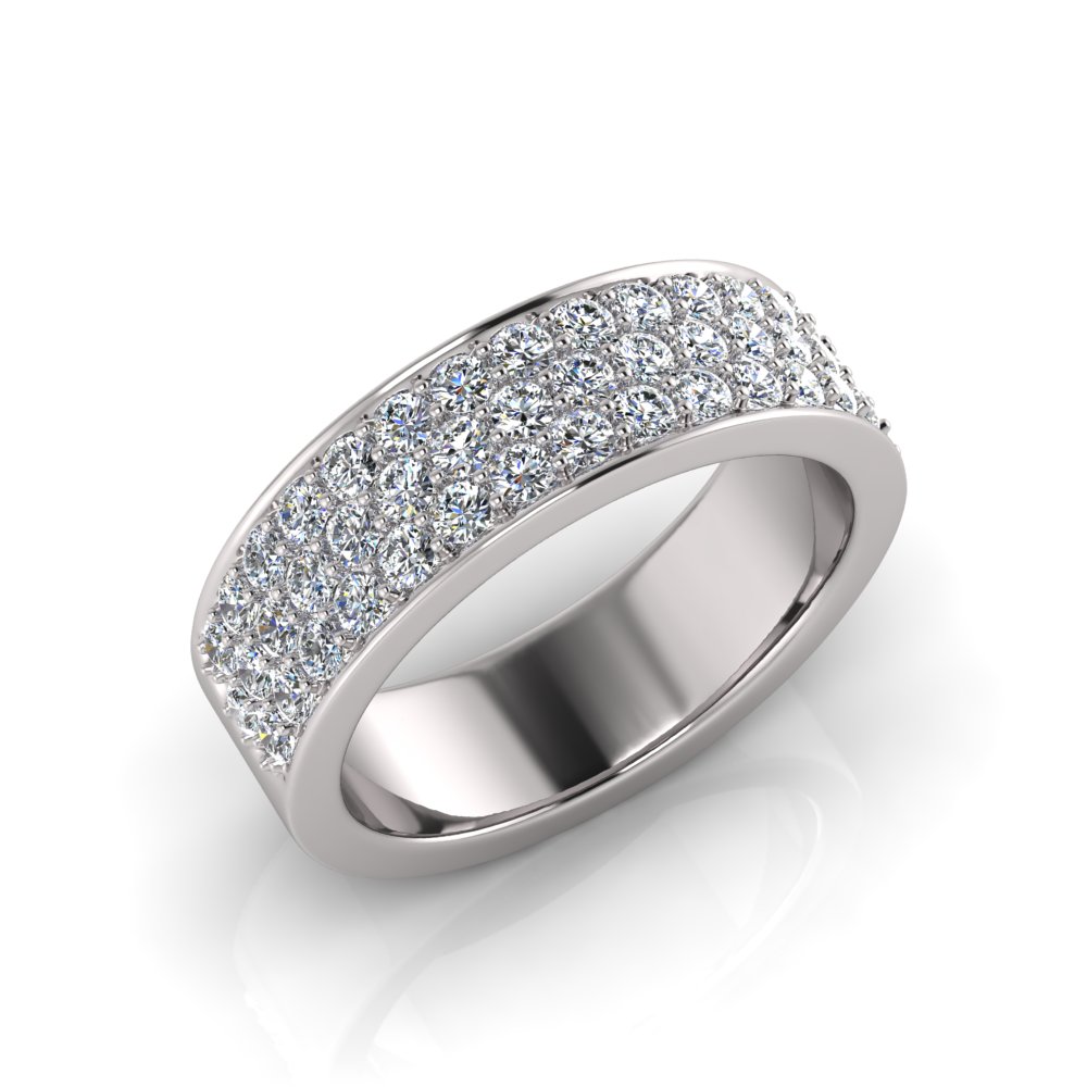 Flat Three Row Pave Set Round Wedding Band