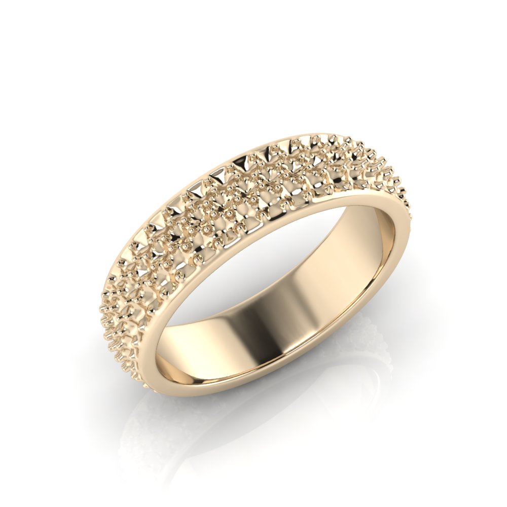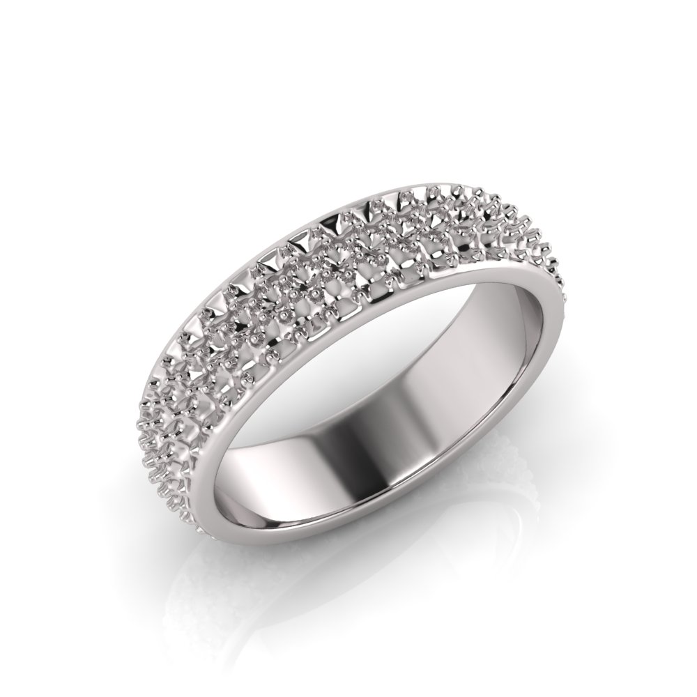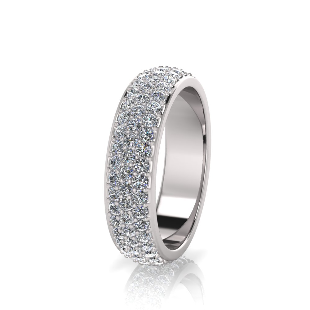 Rounded Three Row Pave Set Round Wedding Band