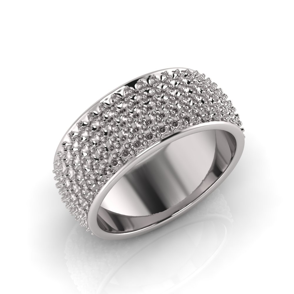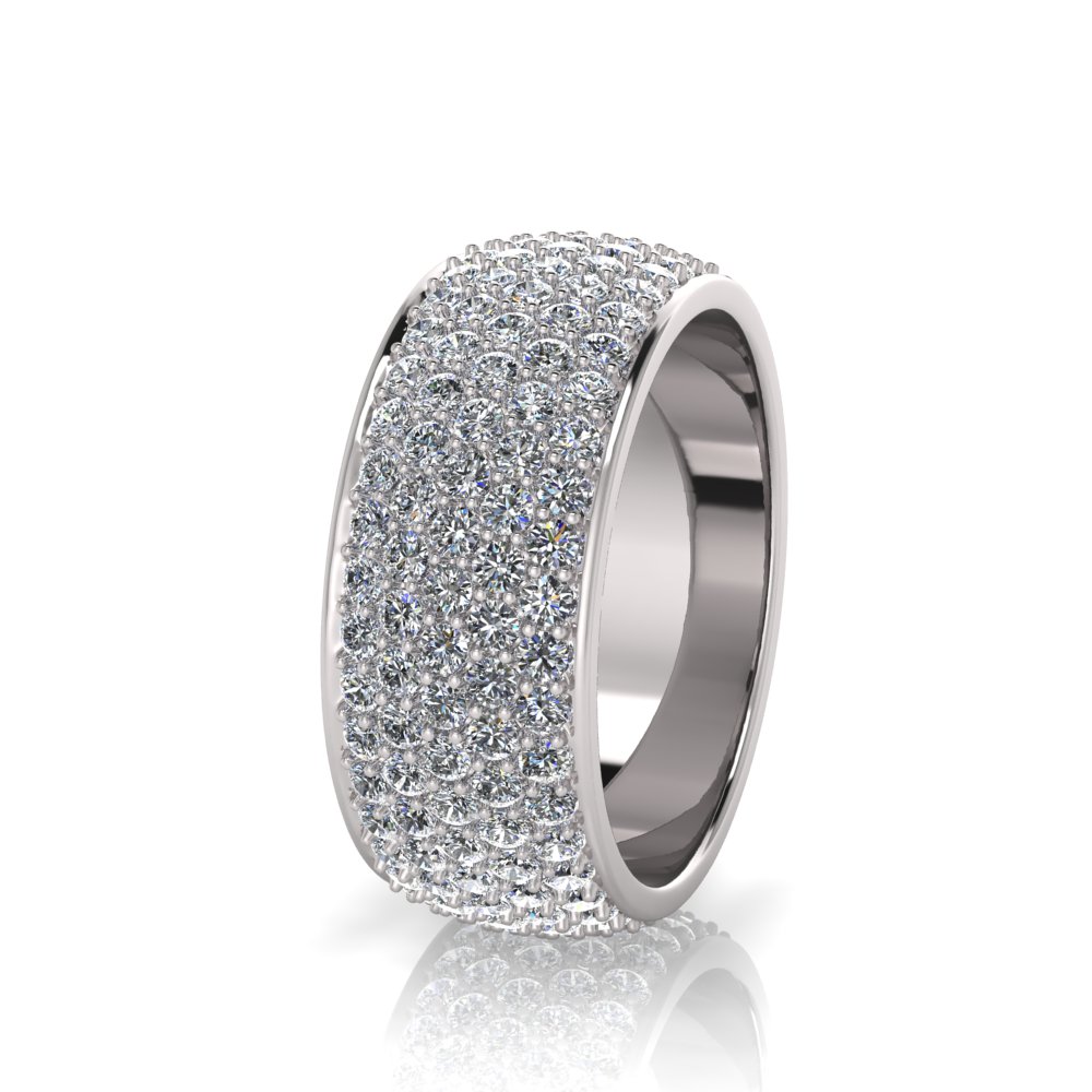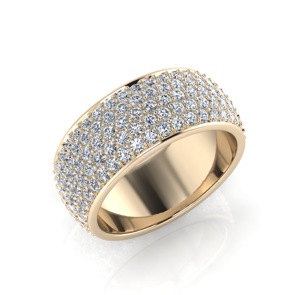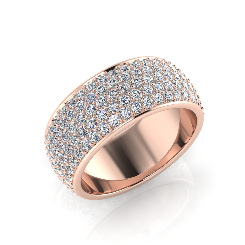 Rounded Five Row Pave Set Round Wedding Band