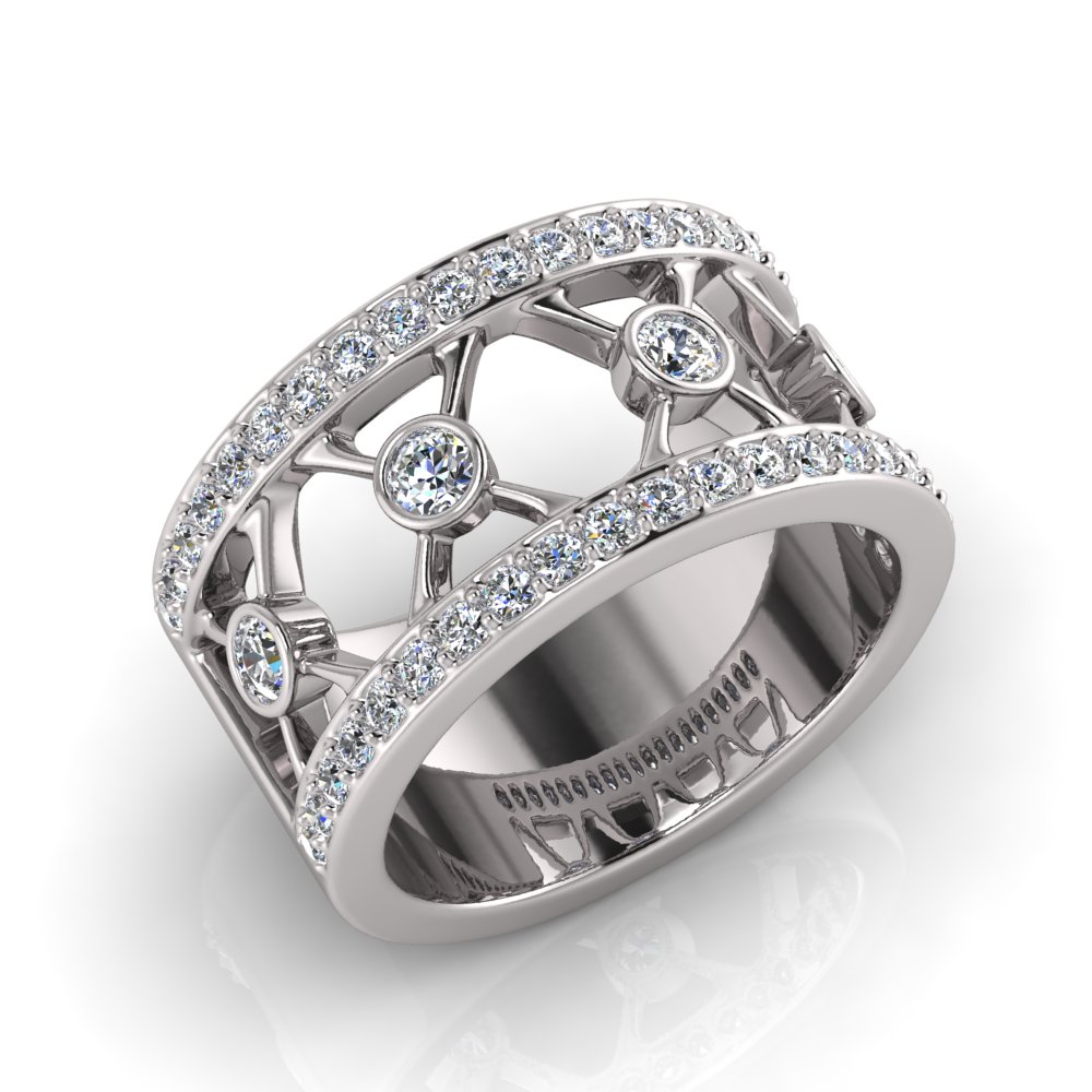 Rub-over And Pave Round Cross Wedding Band
