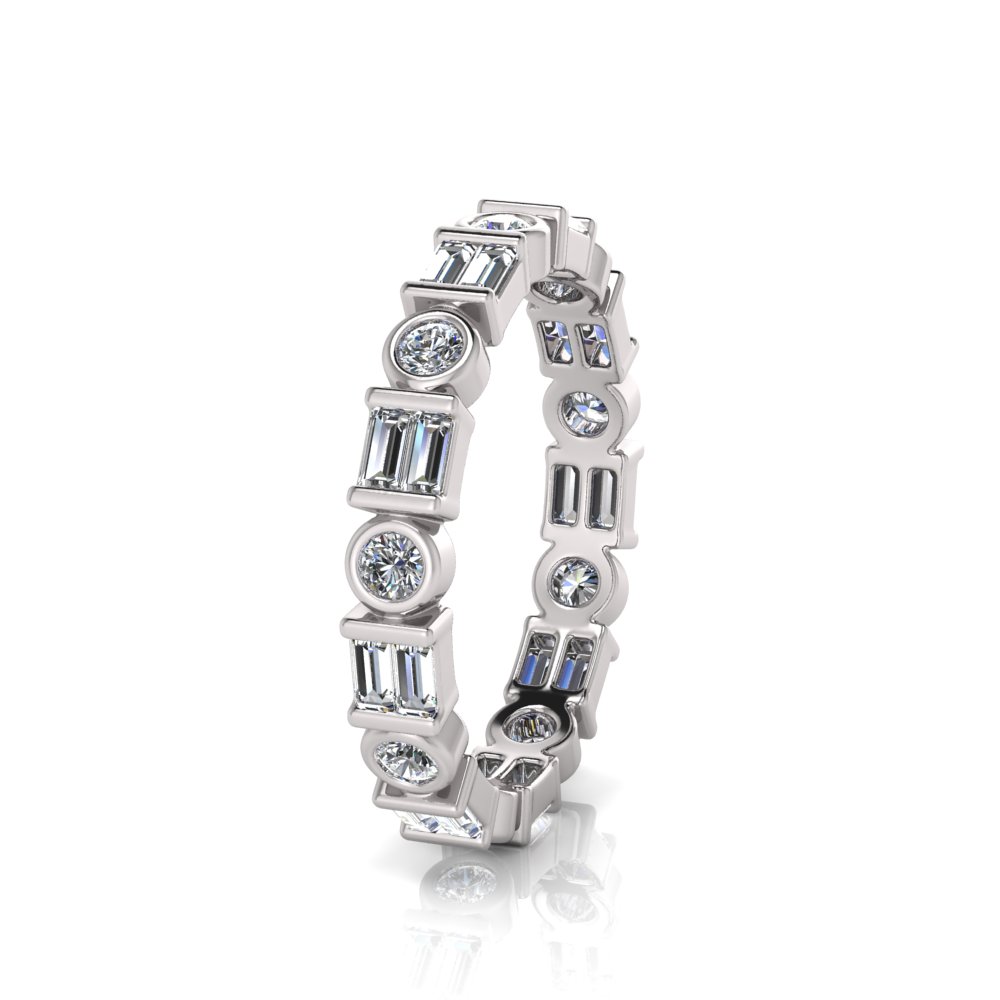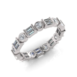 Round Bezel Set And Baguettes Bar Set Eternity Ring