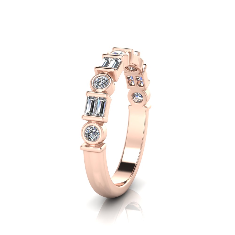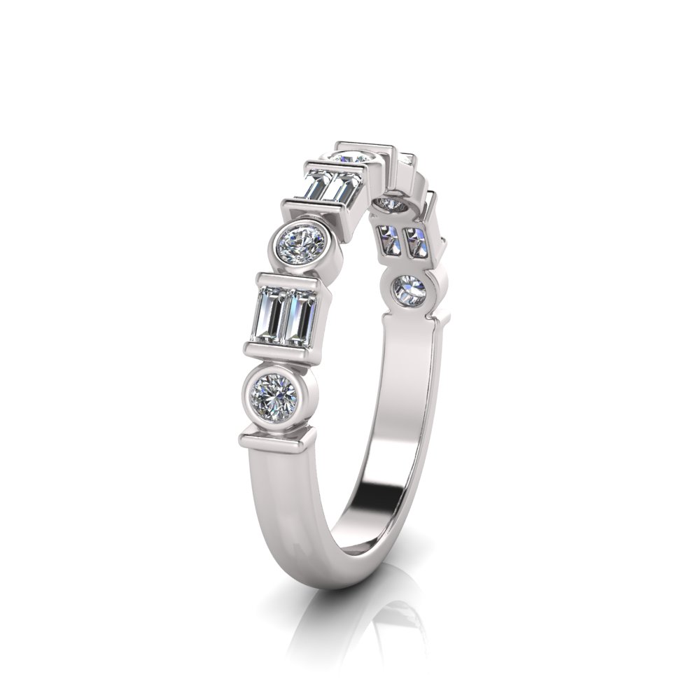 Round Bezel Set And Baguettes Bar Set | Half Round Shank